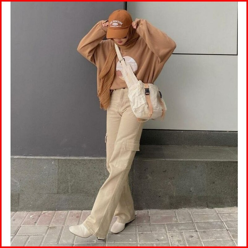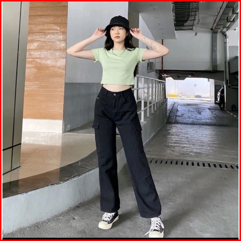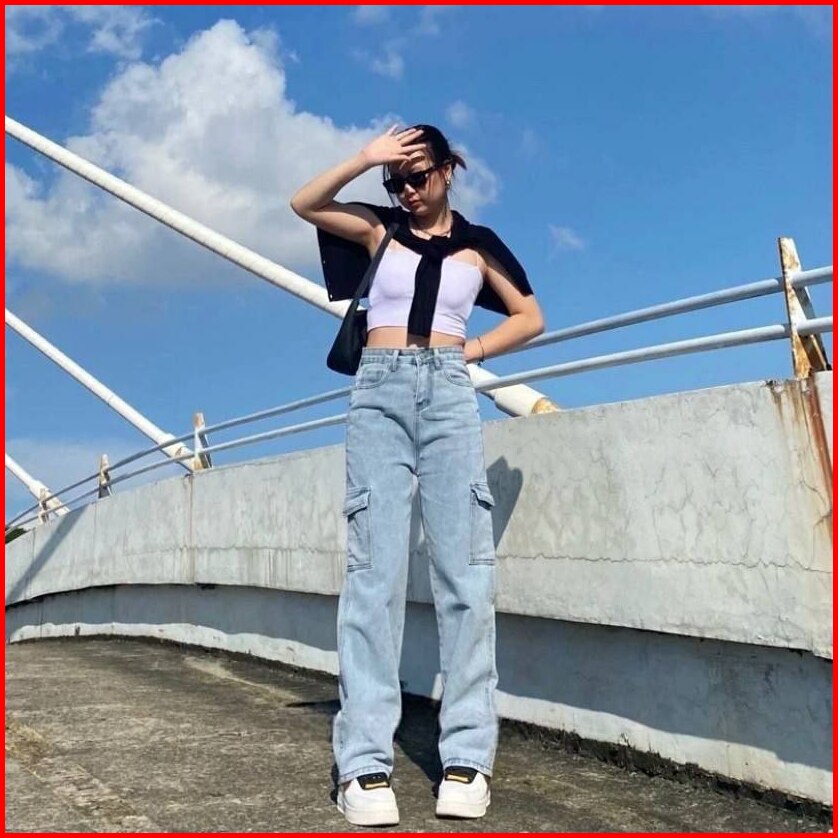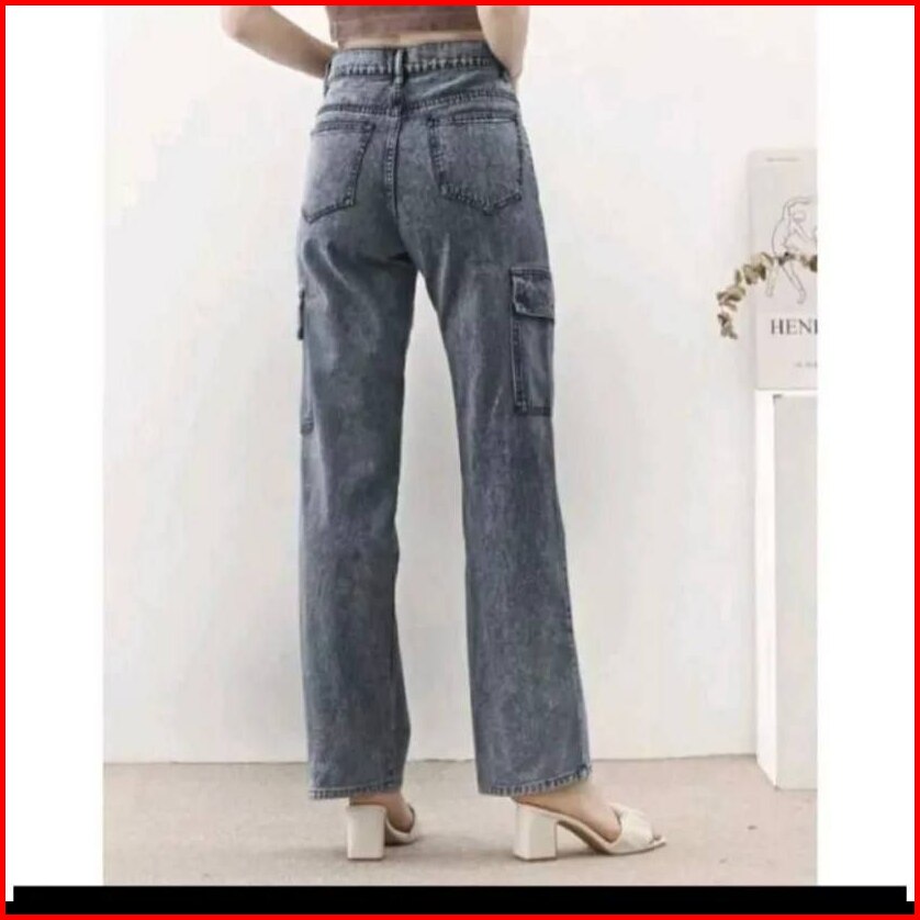 Celana Highwaist Cargo Jeans Loose Wanita Kulot Cargo Highwaist
