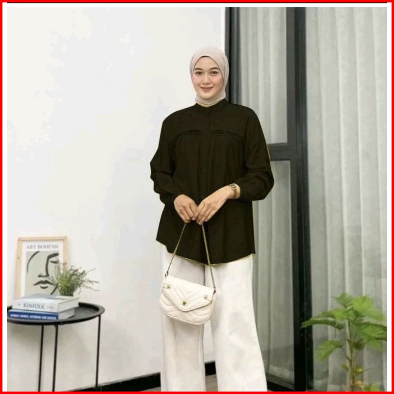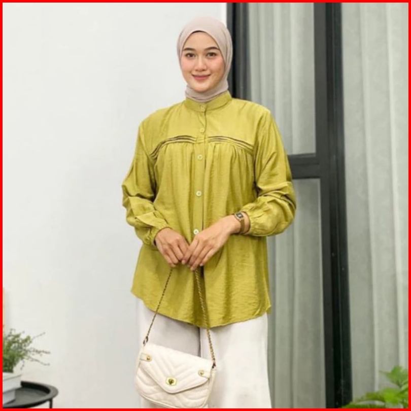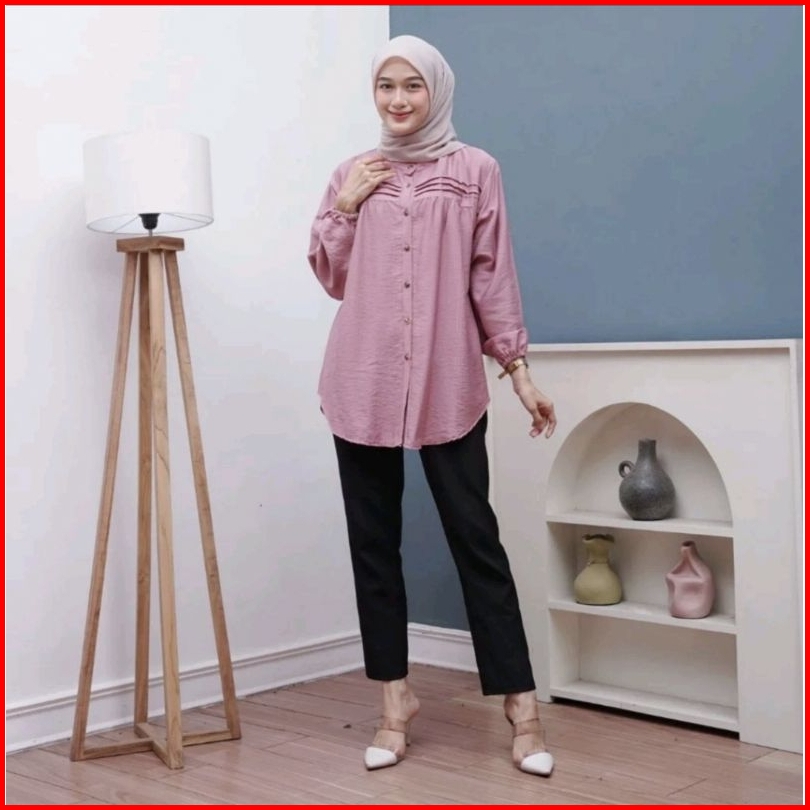 Kemeja Wanita Bahan Polo Linen Tami Blouse Atasan Wanita Full Kancing Ld120