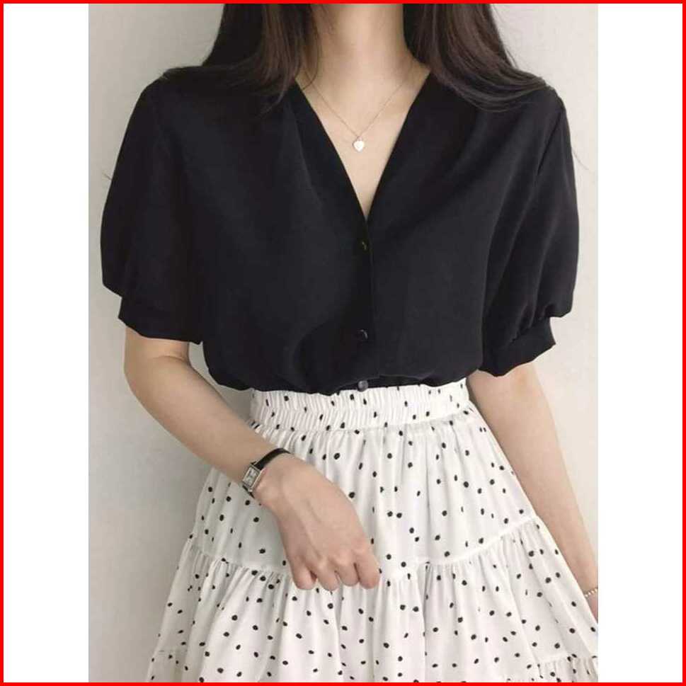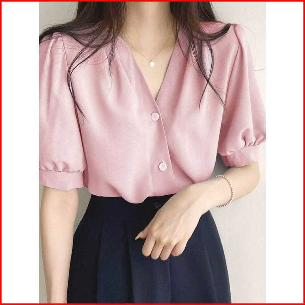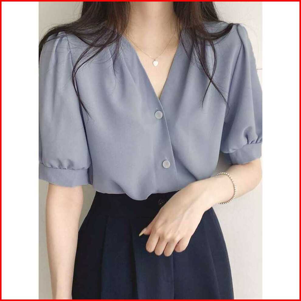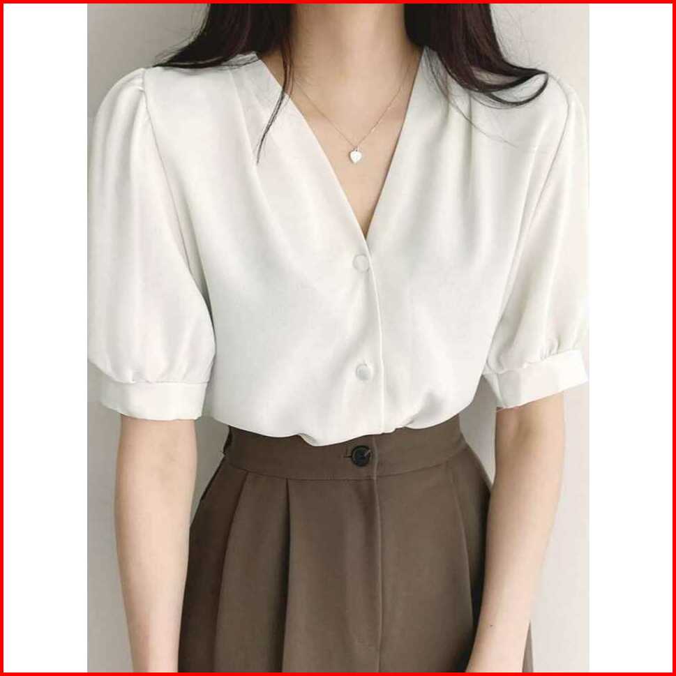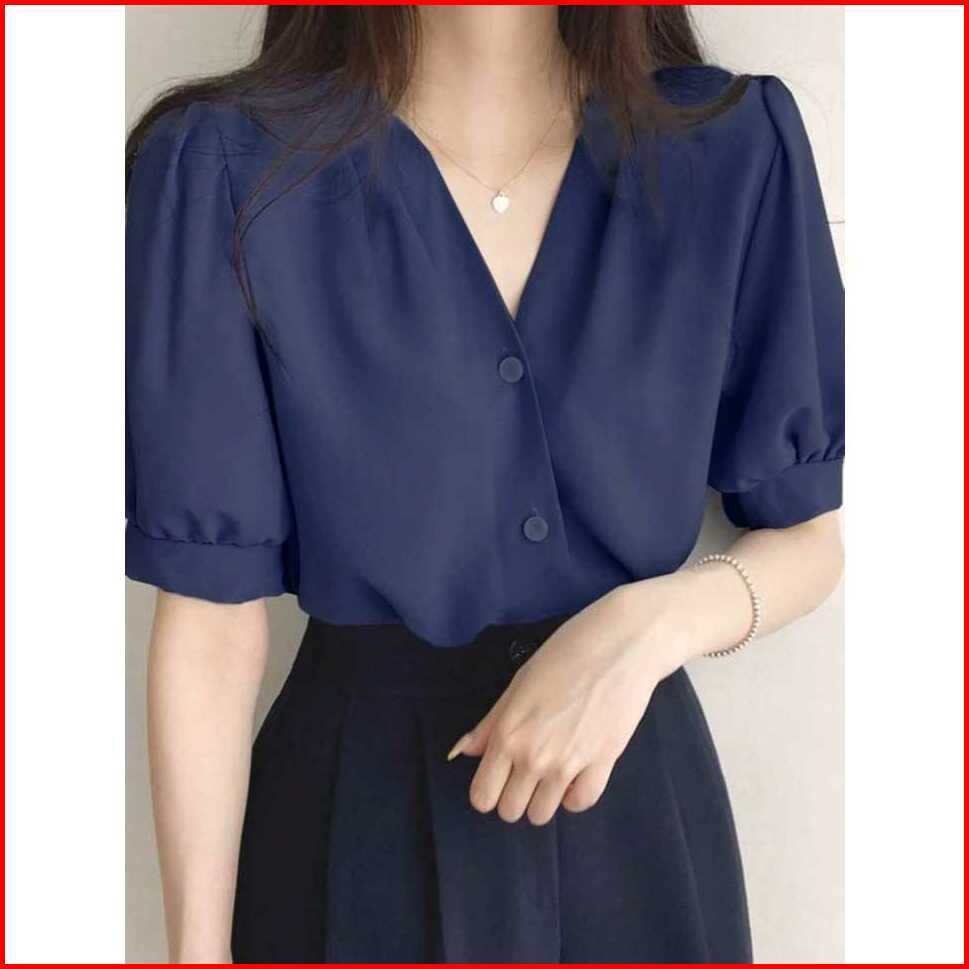 Calissa Fashion Kemeja Atasan Wanita Kantor Office Style Korea Lengan Pendek Model Angela