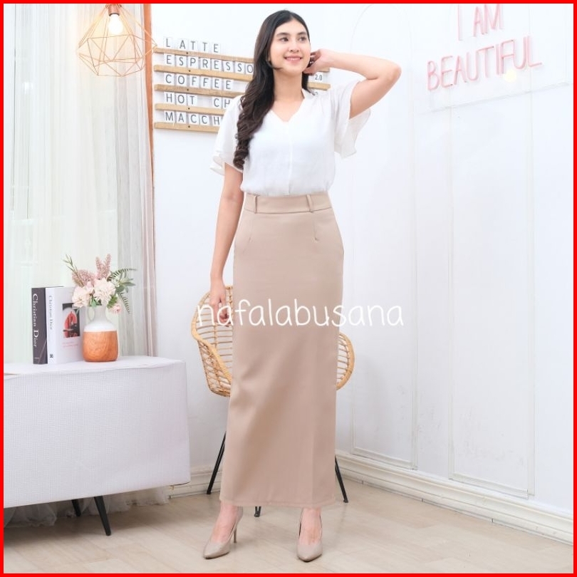 Rok Span Kerja Wanita Bahan Kantor Formal Wanita Rempel Bawah Biron S.m.l.xl