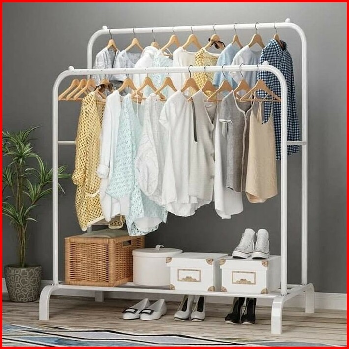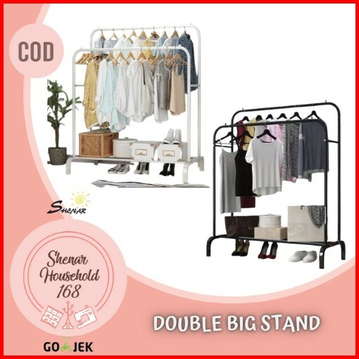 Shenar Caramel Double Big Stand Hanger Gantungan Baju Stainless Hanger Lemari Baju Terbuka Big Stand Gantungan Baju Unik