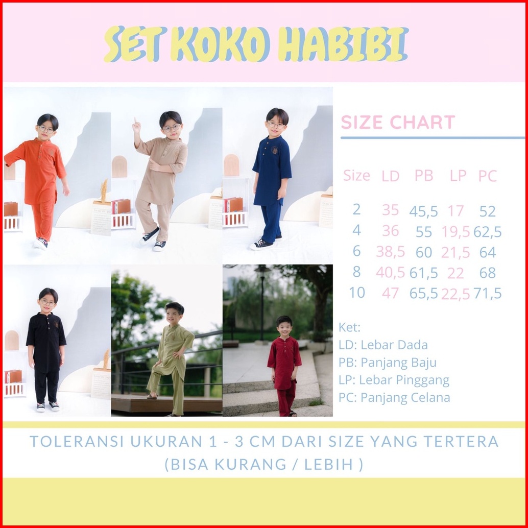 Setelan Koko Anak Habibi Junior Hooneybee Mix Warna Size 2-10 Tahun