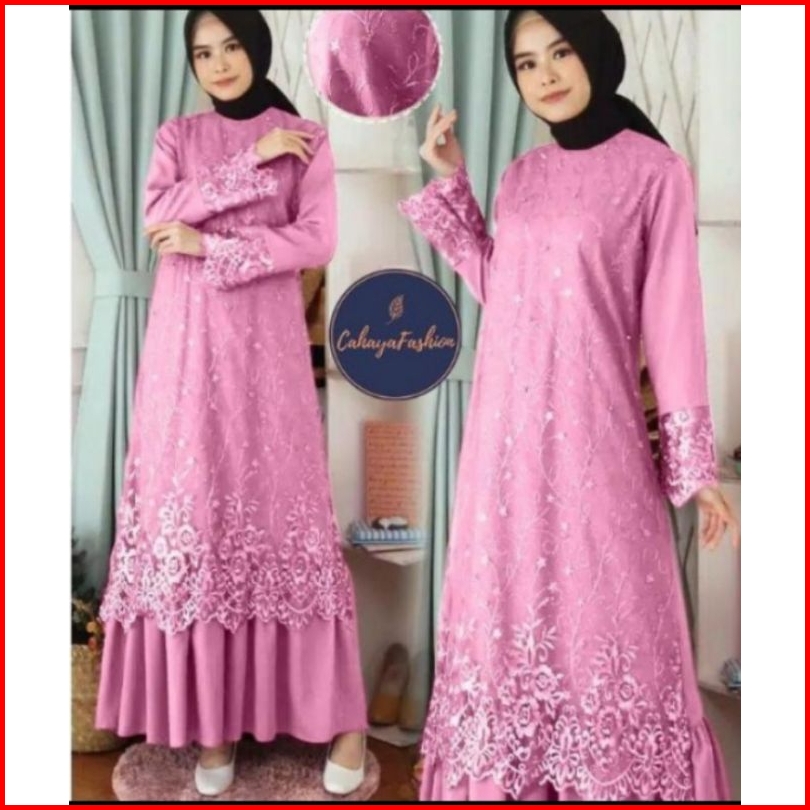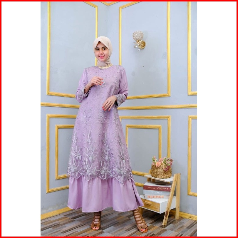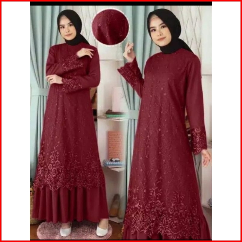 Gamis Pesta Model Terbaru Tile Mutiara Bunga Bawah Tebal