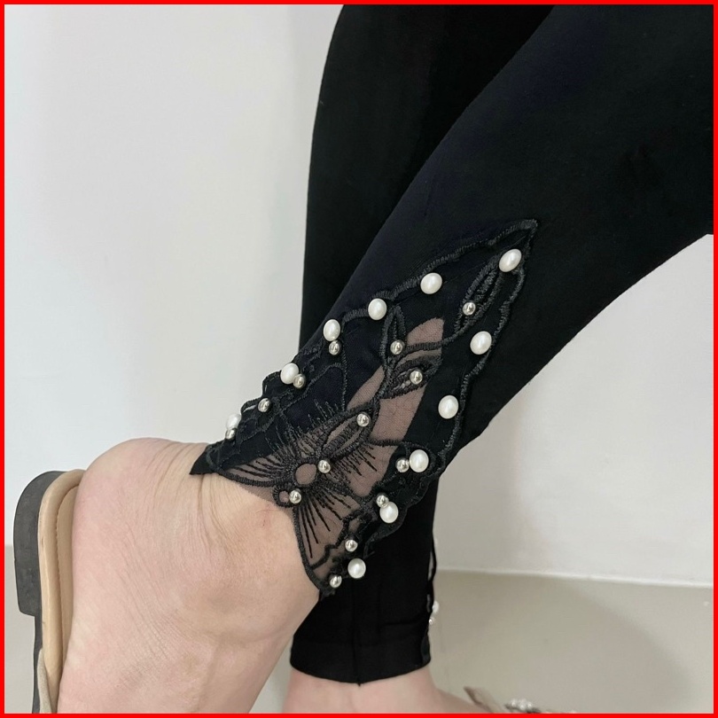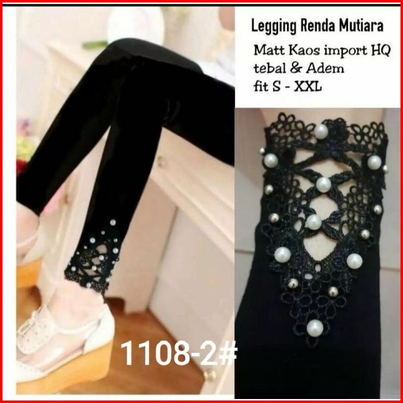 Celana Legging Renda Mutiara Leging Renda Mote Brukat Highwaist Lejing Renda Mote Kaki