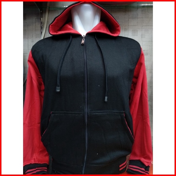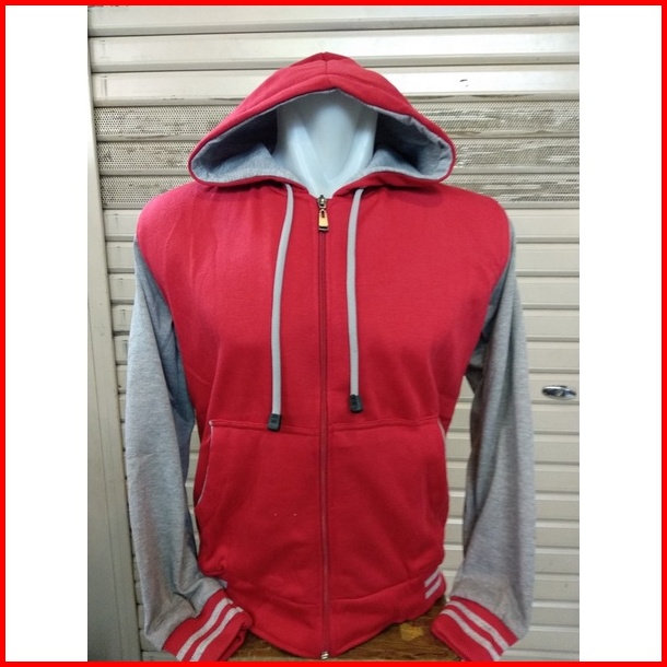 Jaket Hoodie Varsity Zipper Raglan Polos Unisex Pria Wanita Banyak Warna