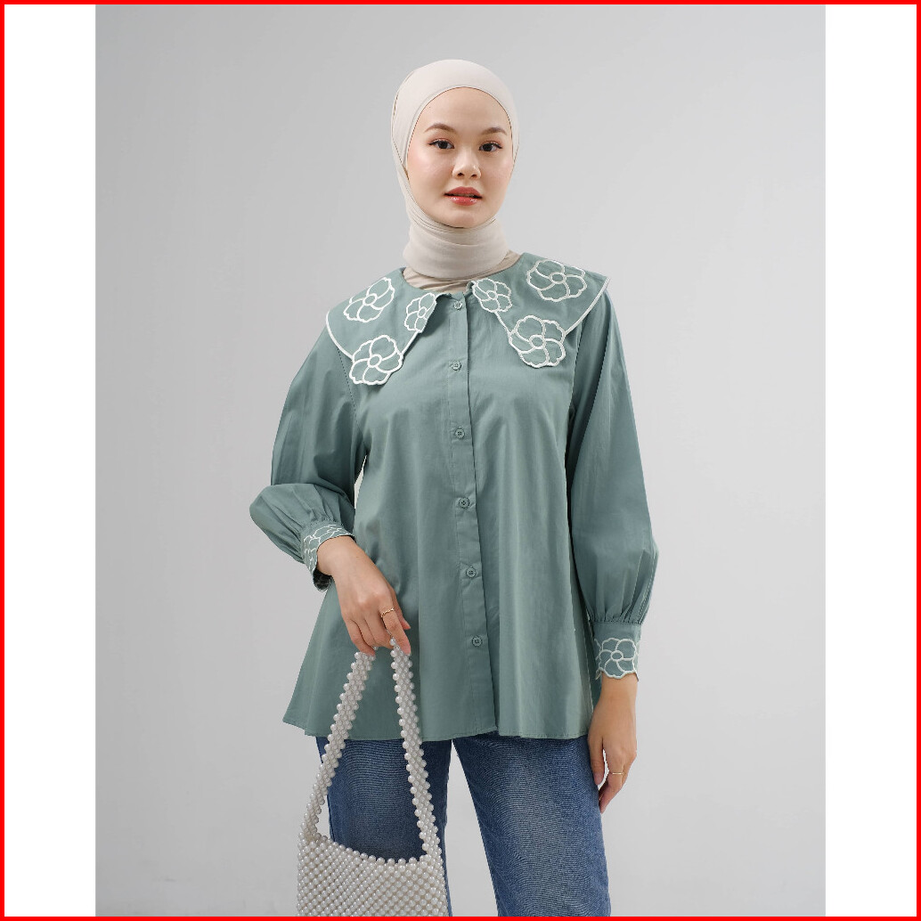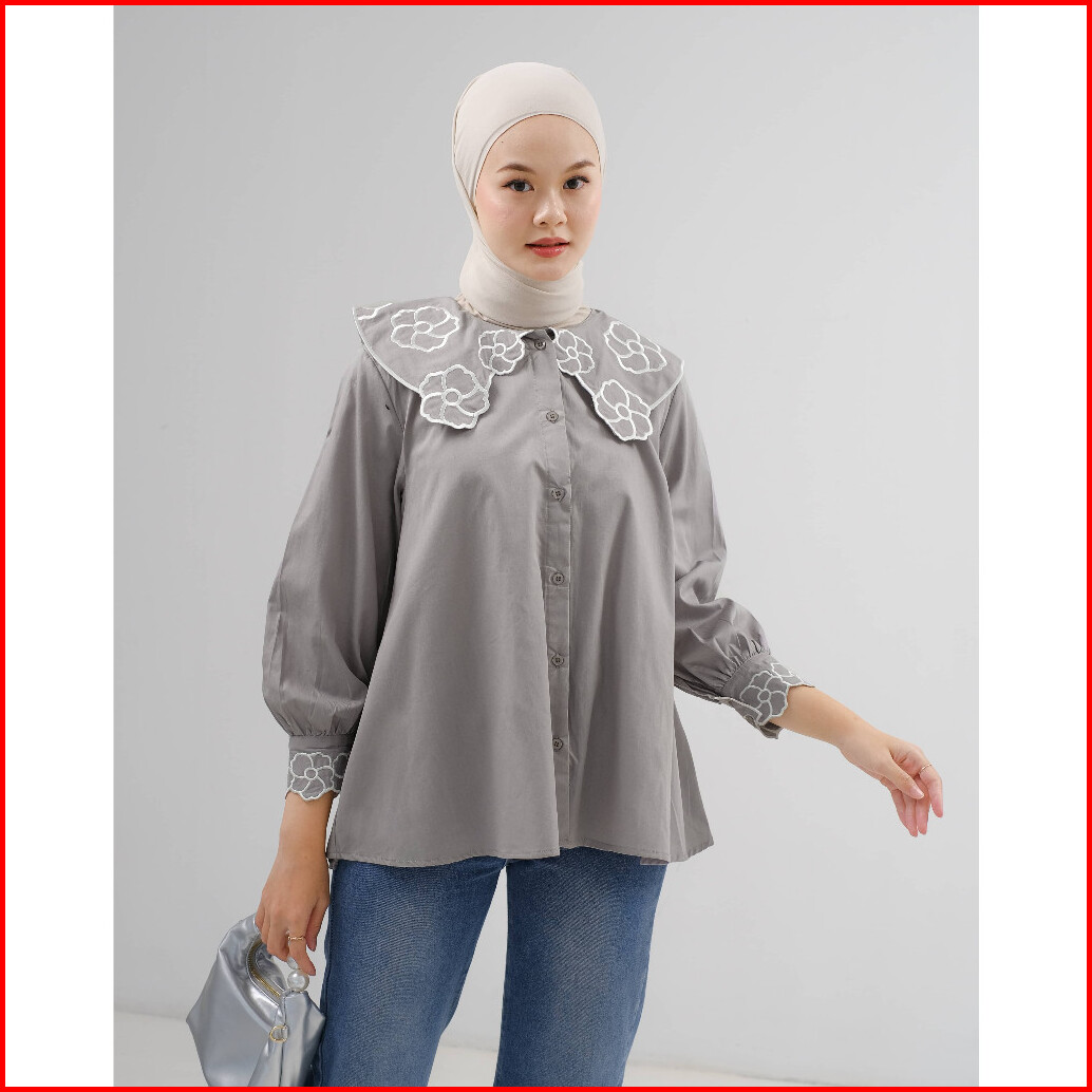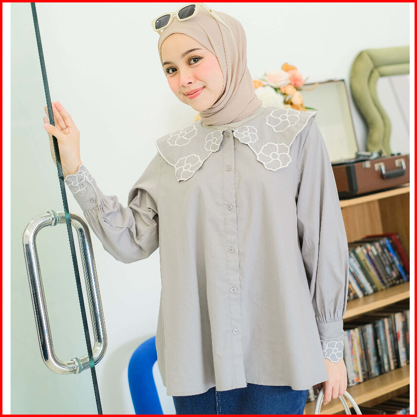 Mayoutfit Cecya Shirt Kemeja Basic Wanita Kerah Bordir Floral Bunga