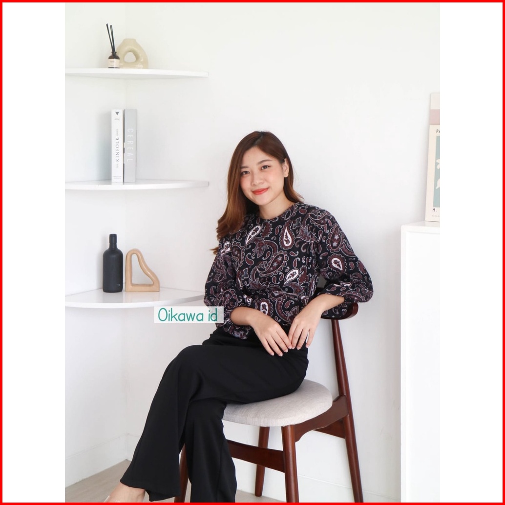 Syatifa Blouse Batik Atasan Batik Wanita Lengan Balon