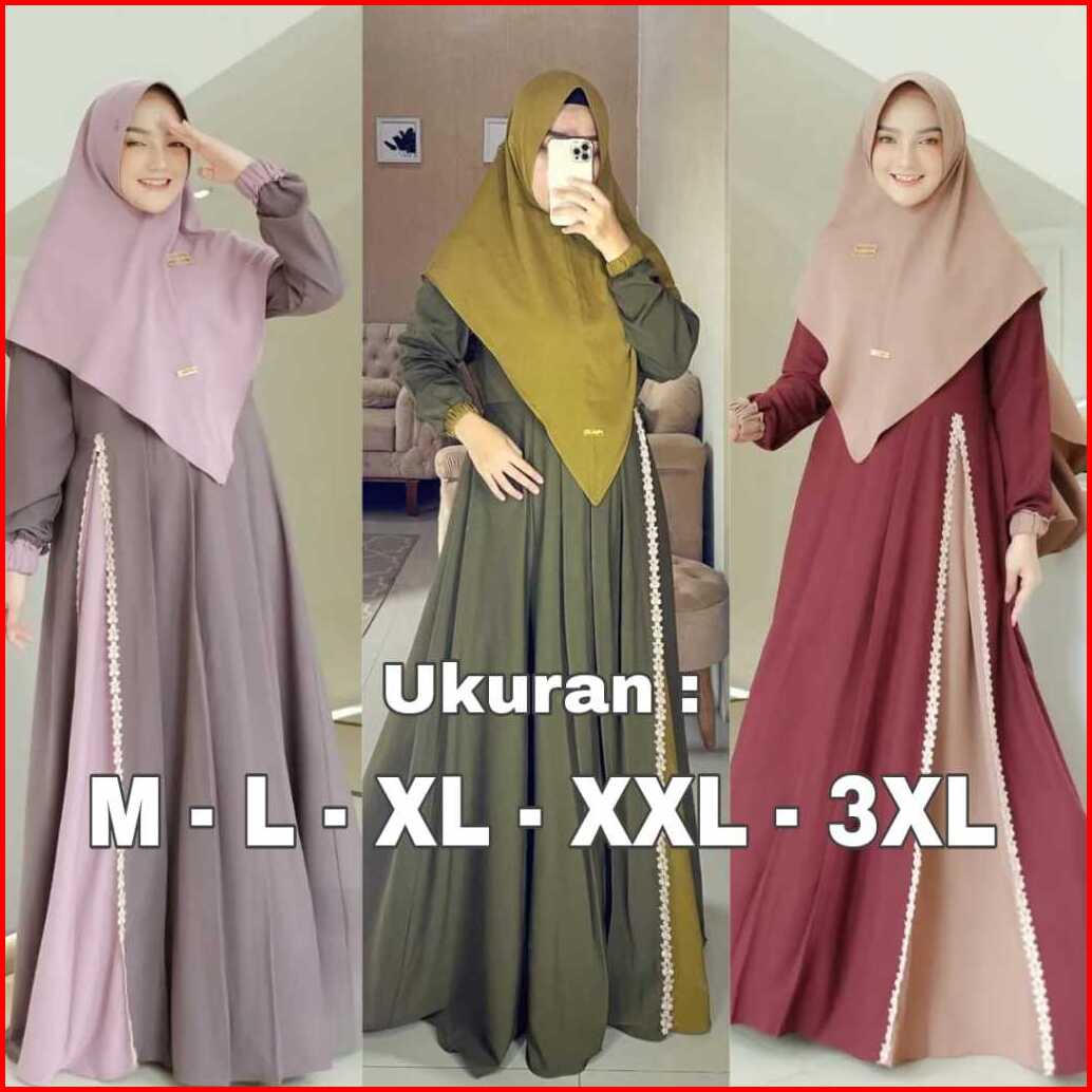 Gamis Jumbo Set Khimar Terlaris Bahan Adem Gamis Terbaru Baju Lebaran Gamis Wanita Baju Fashion Muslim Jumbo Size M L Xl