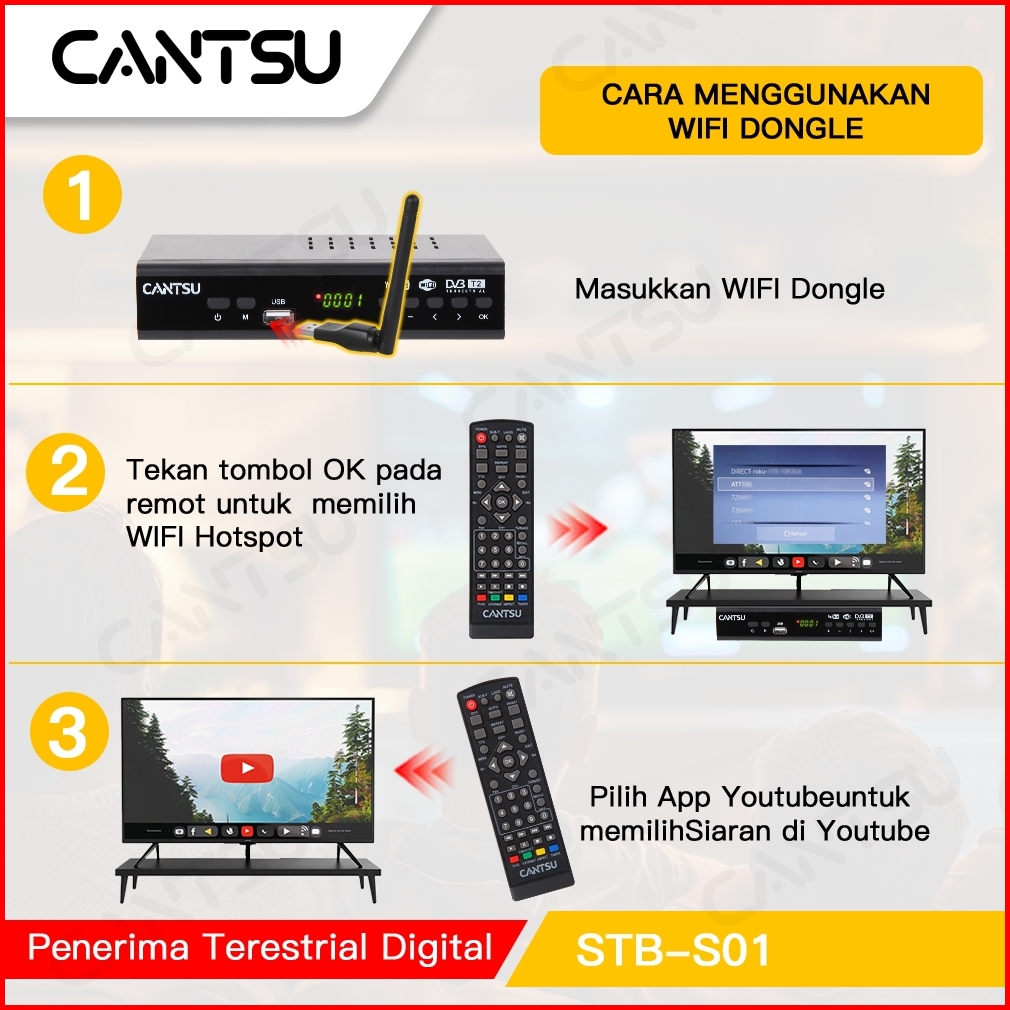 Codcantsu Stb-s01 Set Top Box Tv Digital Receiver Penerima Siaran Full Hd Stb Wifi Bisa Youtube Dvb-t2 Bisa Dapet Semua