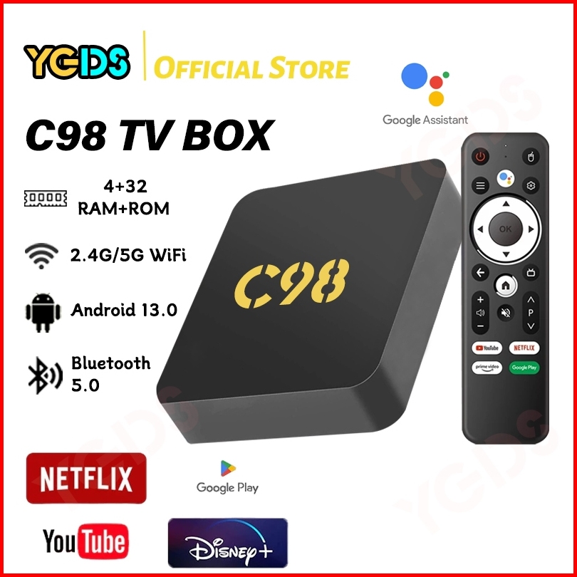 Ygds C98 Android Tv Box Android 13.0 Os Ram 4gb Rom 32gb Wifi 5g 2.4g Bluetooth Smart Tv Box 4k Ultra Hd Netflix