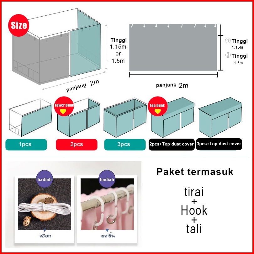 Gorden Smokring Ring Free Hook Tirai Gorden Gorden Taman Tidur Murid Upper Lower Bunk Student Bed Curtain