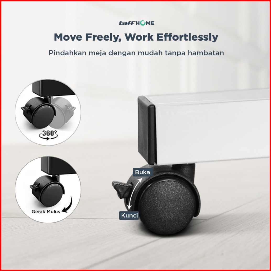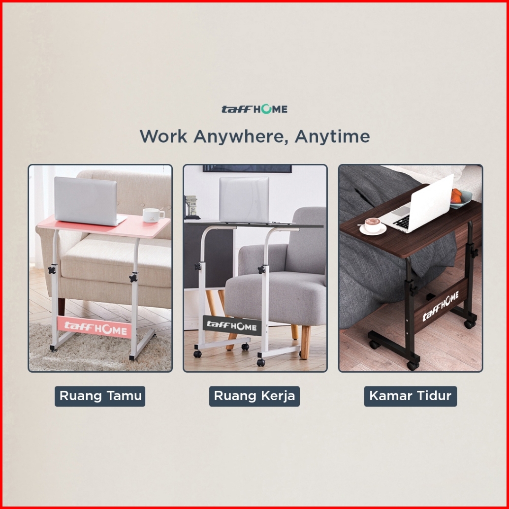Meja Laptop Adjustable Dgn Roda Portable Working Desk 60x40cm - Meja Kerja - Taffhome Nd02