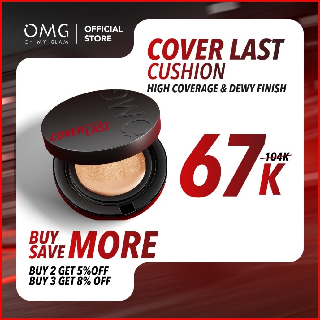 Omg Oh My Glam Coverlast Cushion 15g - Cushion Foundation Concealer Skin Tint Make Up - High Coverage Dewy Finish - Pore