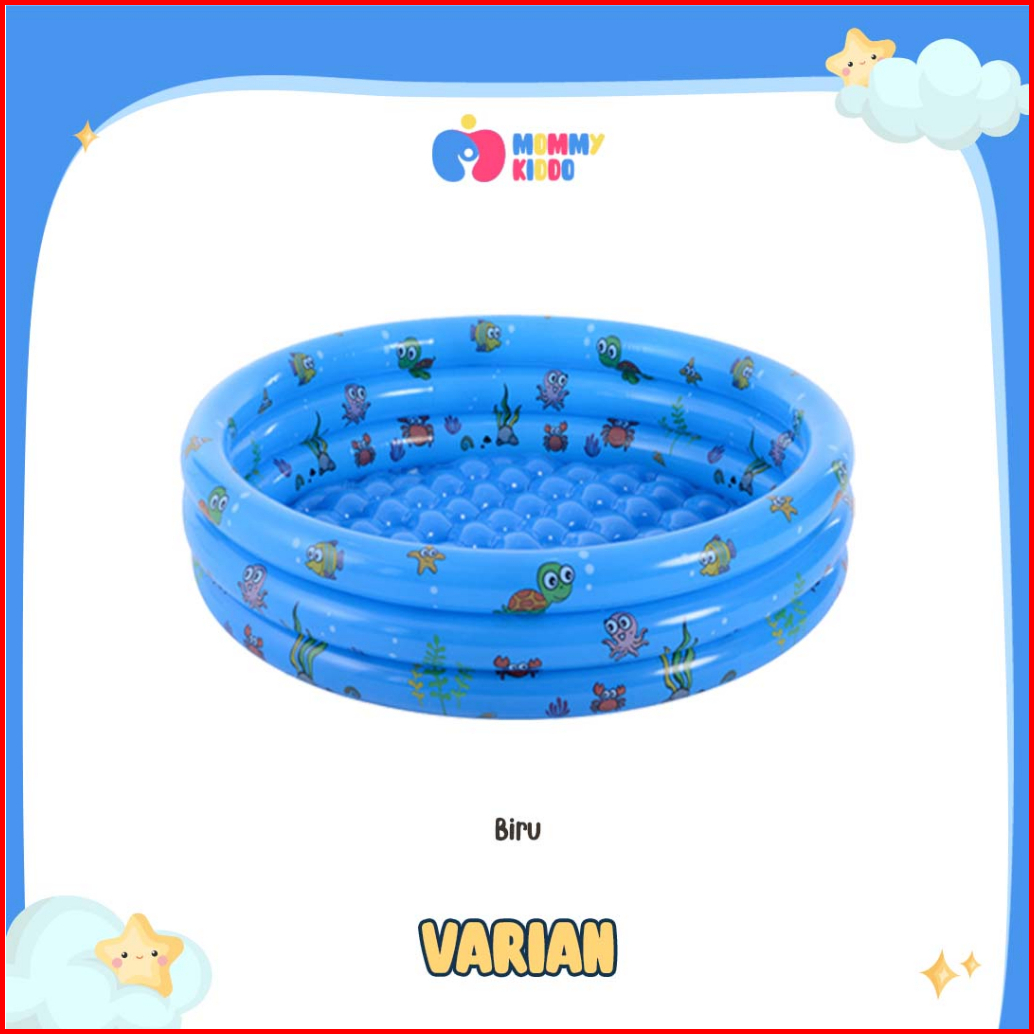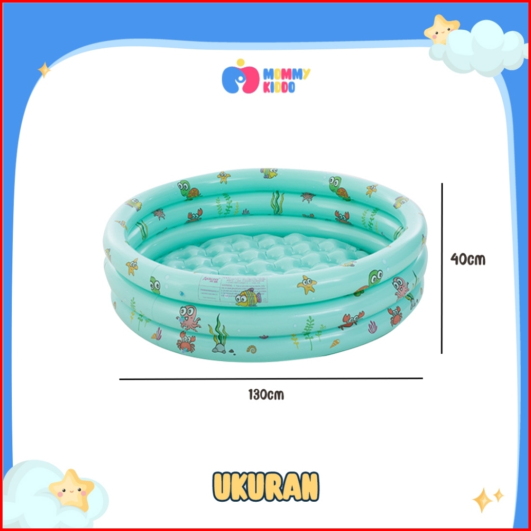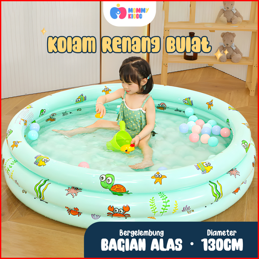 Mommykiddo Kolam Renang Anak Pompa Portable Bentuk Bulat Ukuran 130cm Jumbo Alas Bergelembung Bahan Pvc Premium