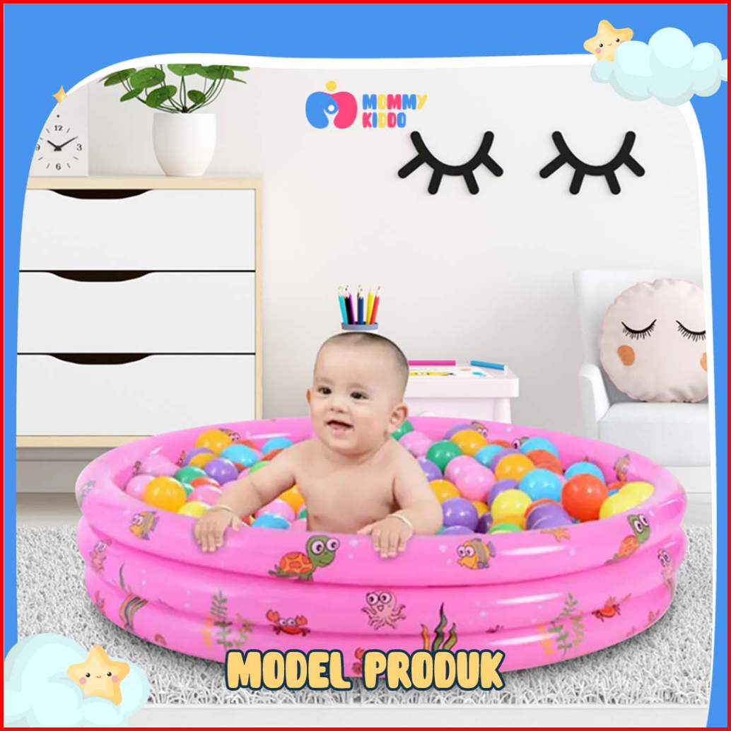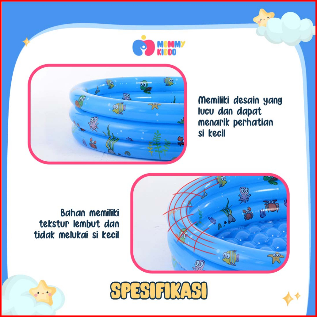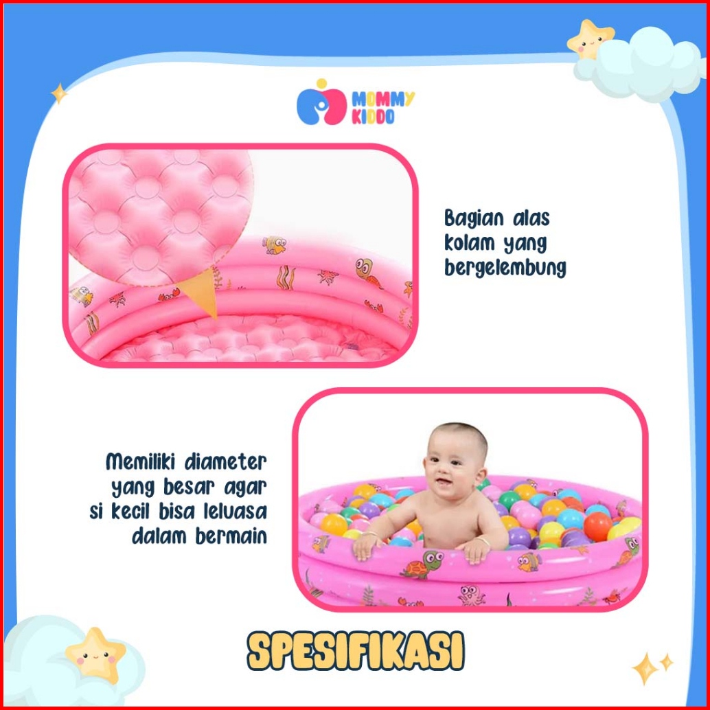 Mommykiddo Kolam Renang Anak Pompa Portable Bentuk Bulat Ukuran 130cm Jumbo Alas Bergelembung Bahan Pvc Premium