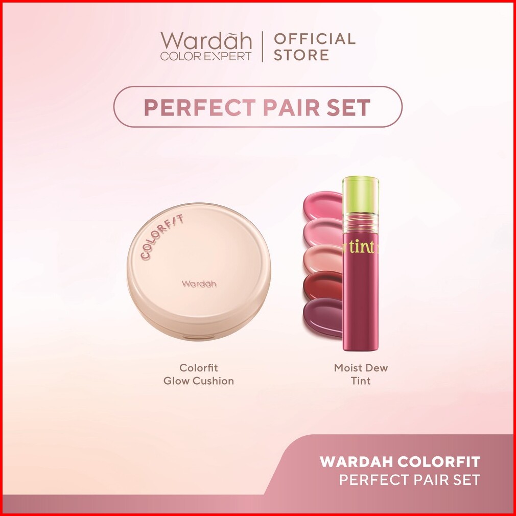 Wardah Paket Perfect Pair Set - Colorfit Perfect Glow Cushion Moist Dew Tint - Makeup - Tahan Lama Dengan Bedak