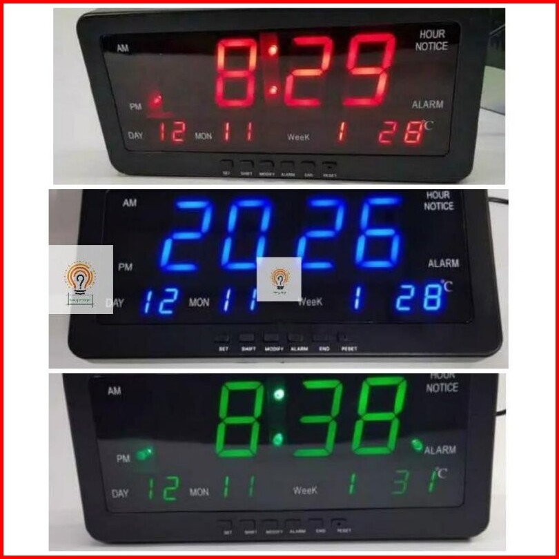 Jam Digital Meja Dan Dinding 1008 Digital Clock 1008 Led Merah Hijau Biru