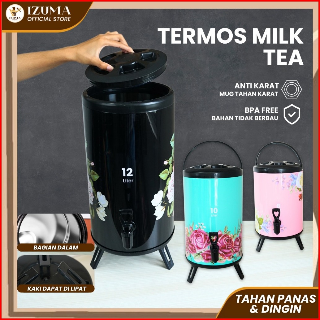 Izuma Termos Air Milk Tea Bucket Bunga Dispenser Minuman Serbaguna Termos Air Minum Panas Dingin