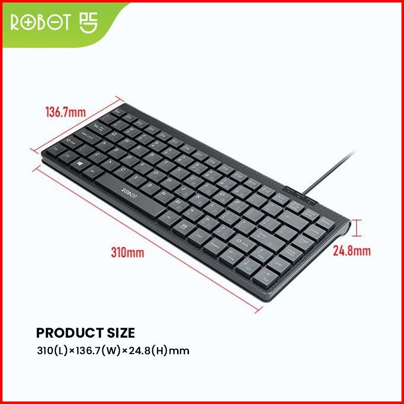 Robot Rk10 Keyboard Portable Mini Wired Ultra Thin Tombol Silent Kecil