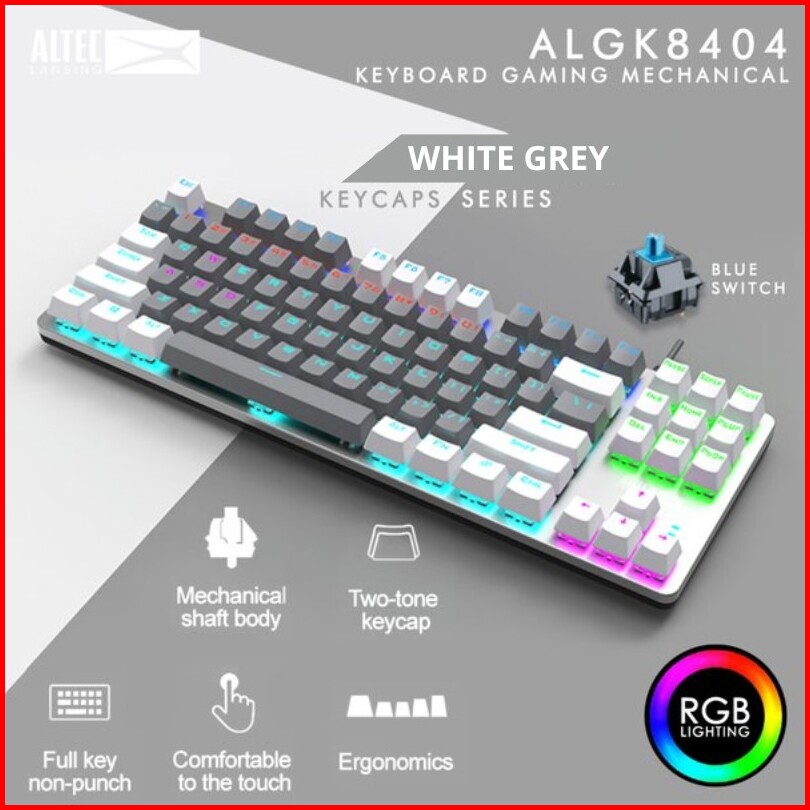 Keyboard Gaming Mechanical Altec Lansing Algk-8404 Rgb - Blue Switch - White Grey - Fashion Keyboard - Style Keyboard -
