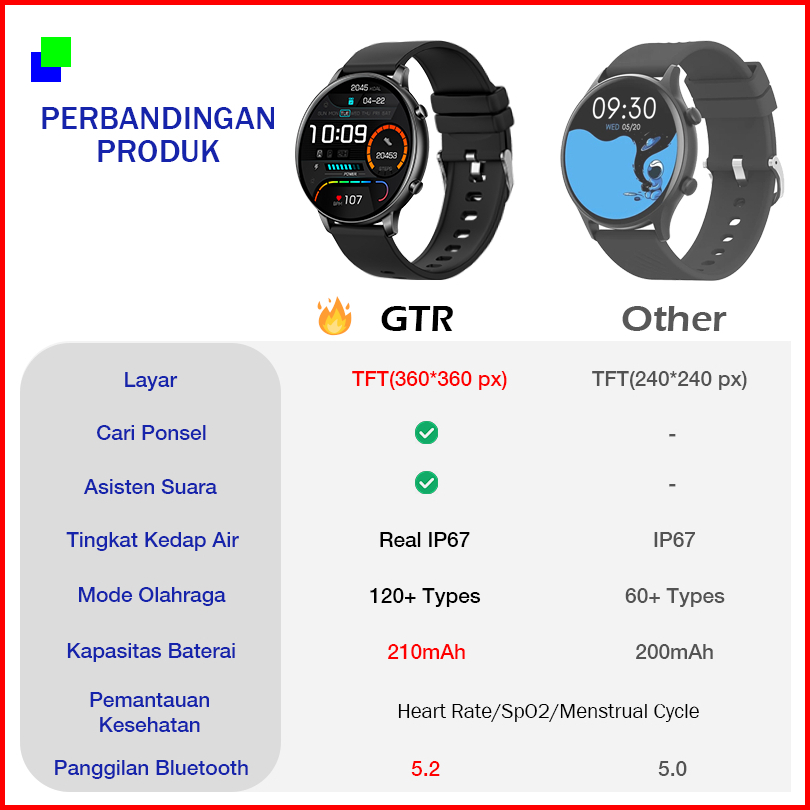 Upgradeaolon Gtr Jam Smartwatch Waterproof 1.39 Inch Hd Touch Screen Kalkulator Wallpaper Kustom Jam Tangan Pria Wanita