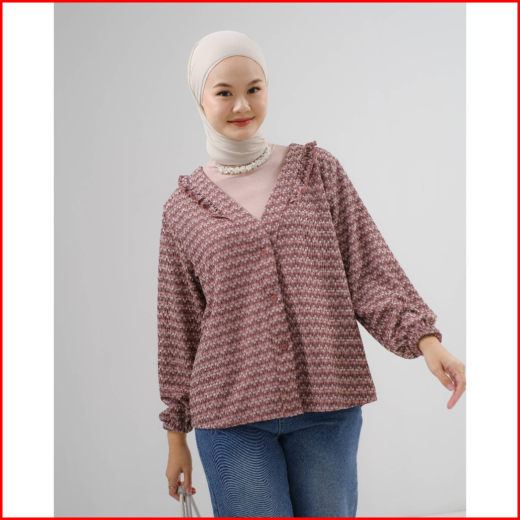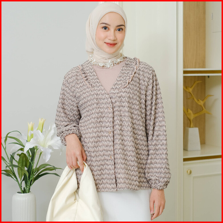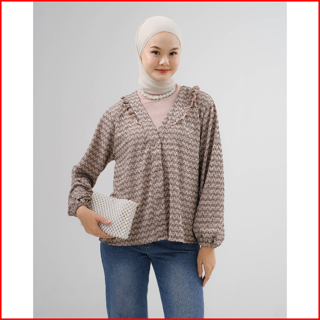 Mayoutfit Kitsya Cardigan Kardigan Knit Motif Kerah Frill Lengan Gelembung