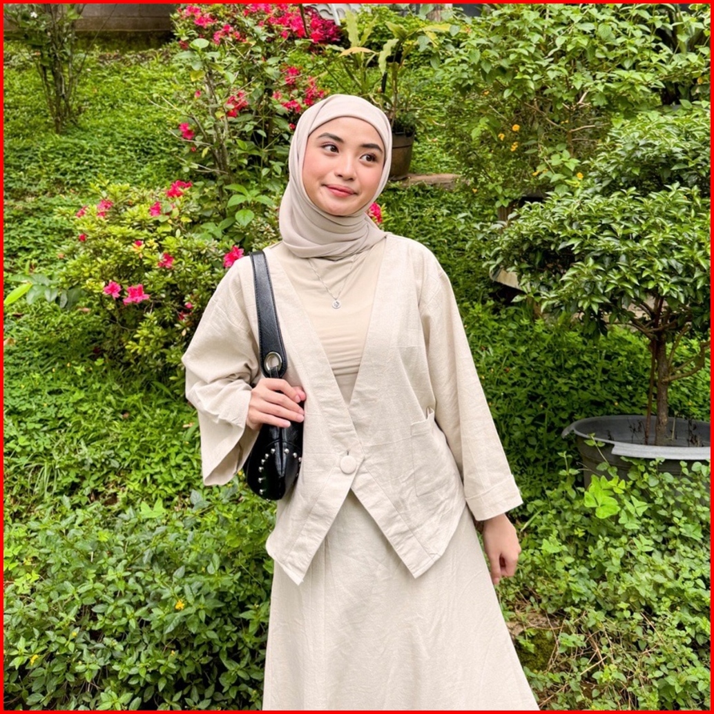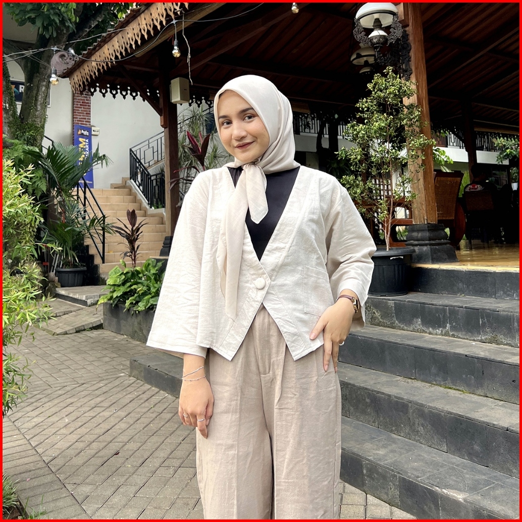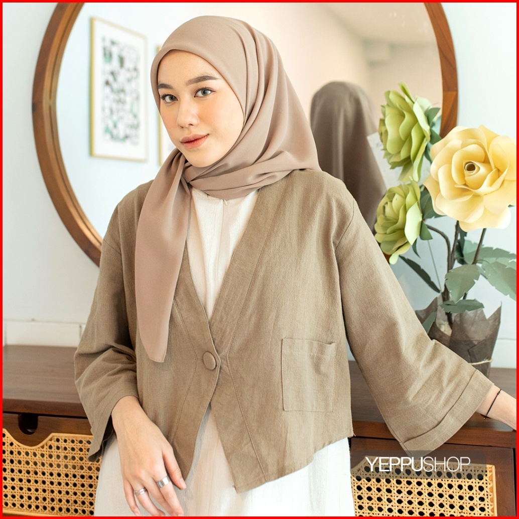 Yeppuoutfit - Haruka Crop Outer I Luaran Outer Blazer Linen Polos Casual Cutting Unik Cute