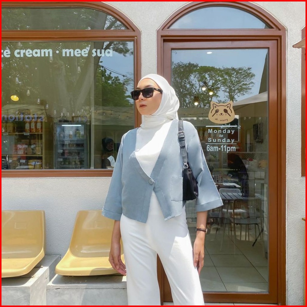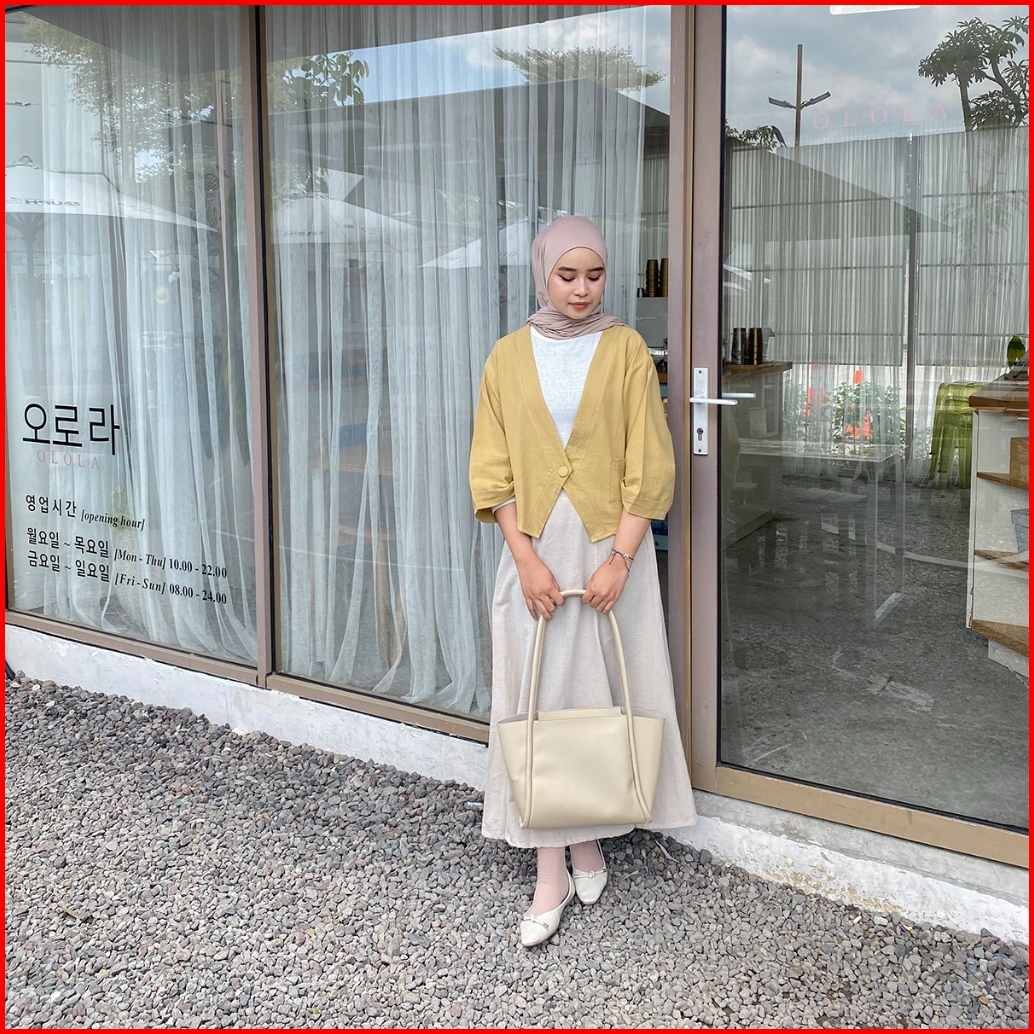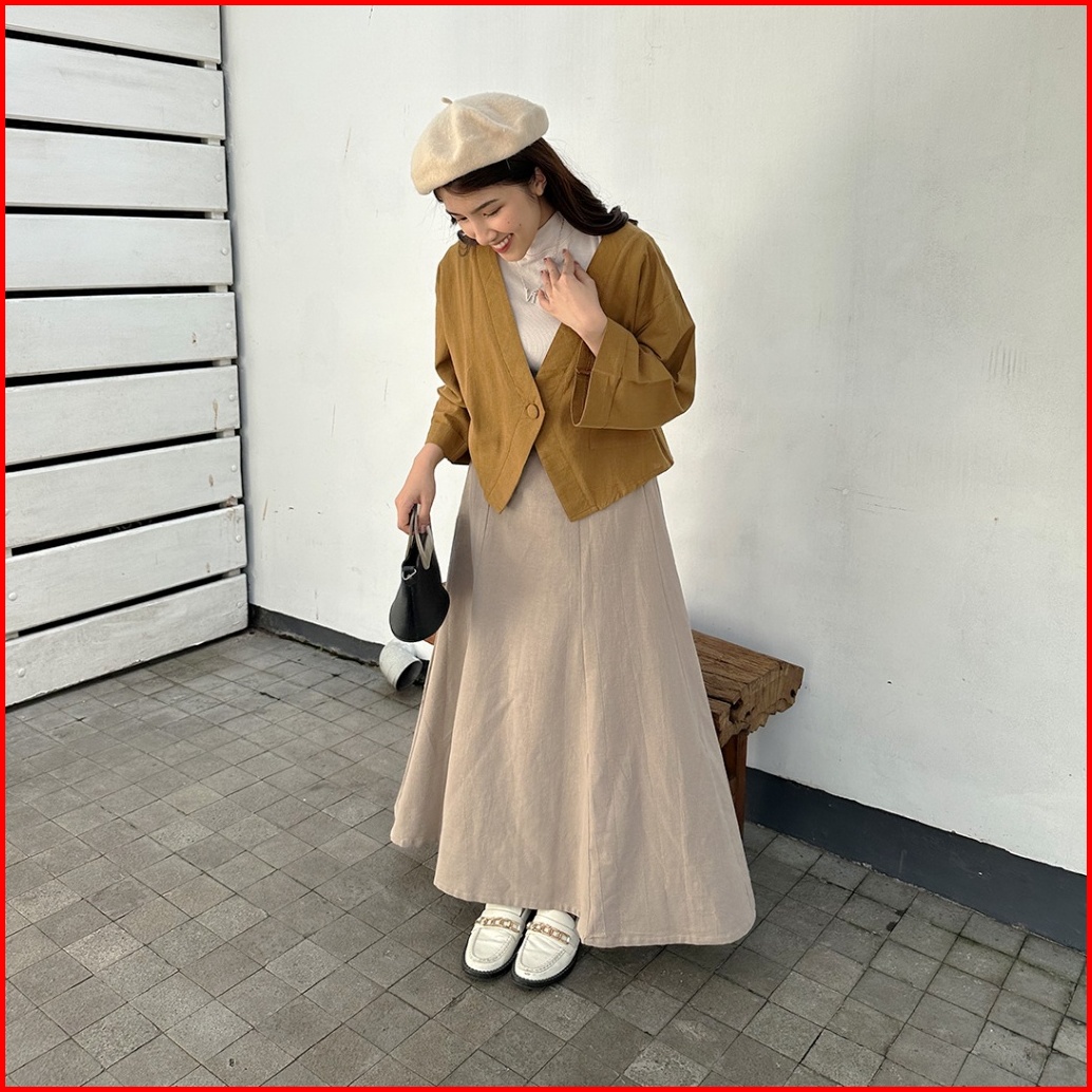 Yeppuoutfit - Haruka Crop Outer I Luaran Outer Blazer Linen Polos Casual Cutting Unik Cute