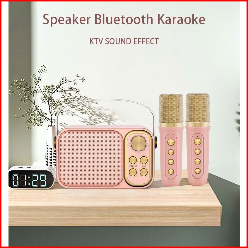 Mic Speaker Bluetooth Karaoke Set 2 Microphone Portable Wireless Speaker Mini Hone Spiker Karaoke