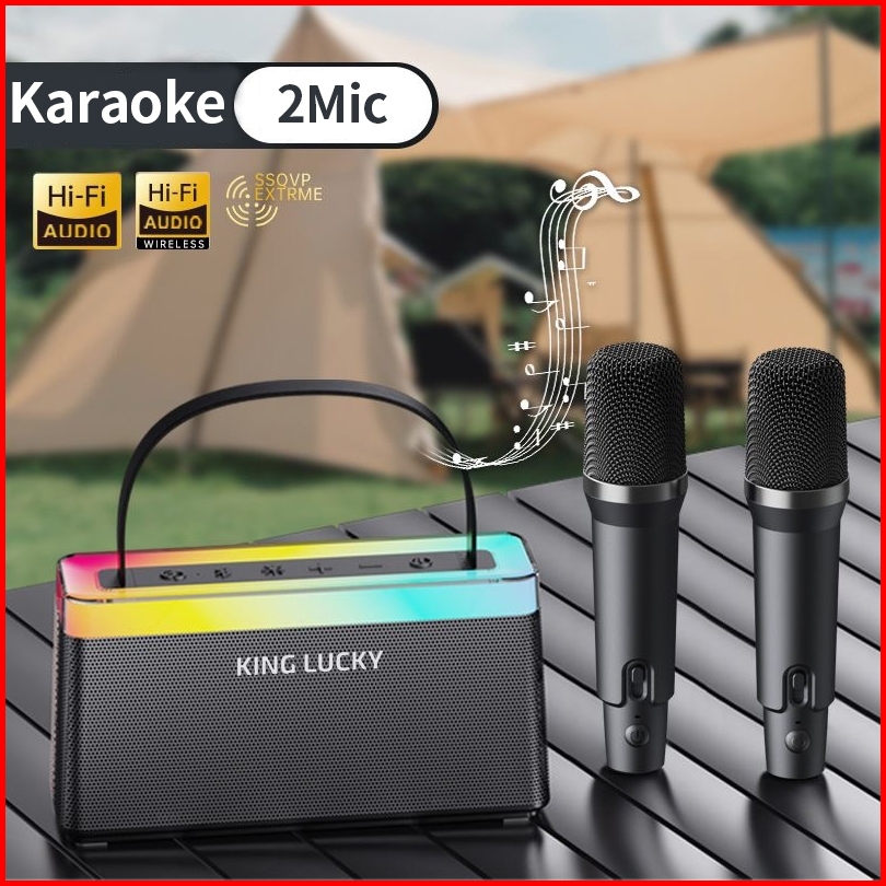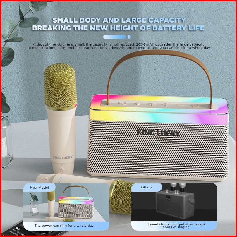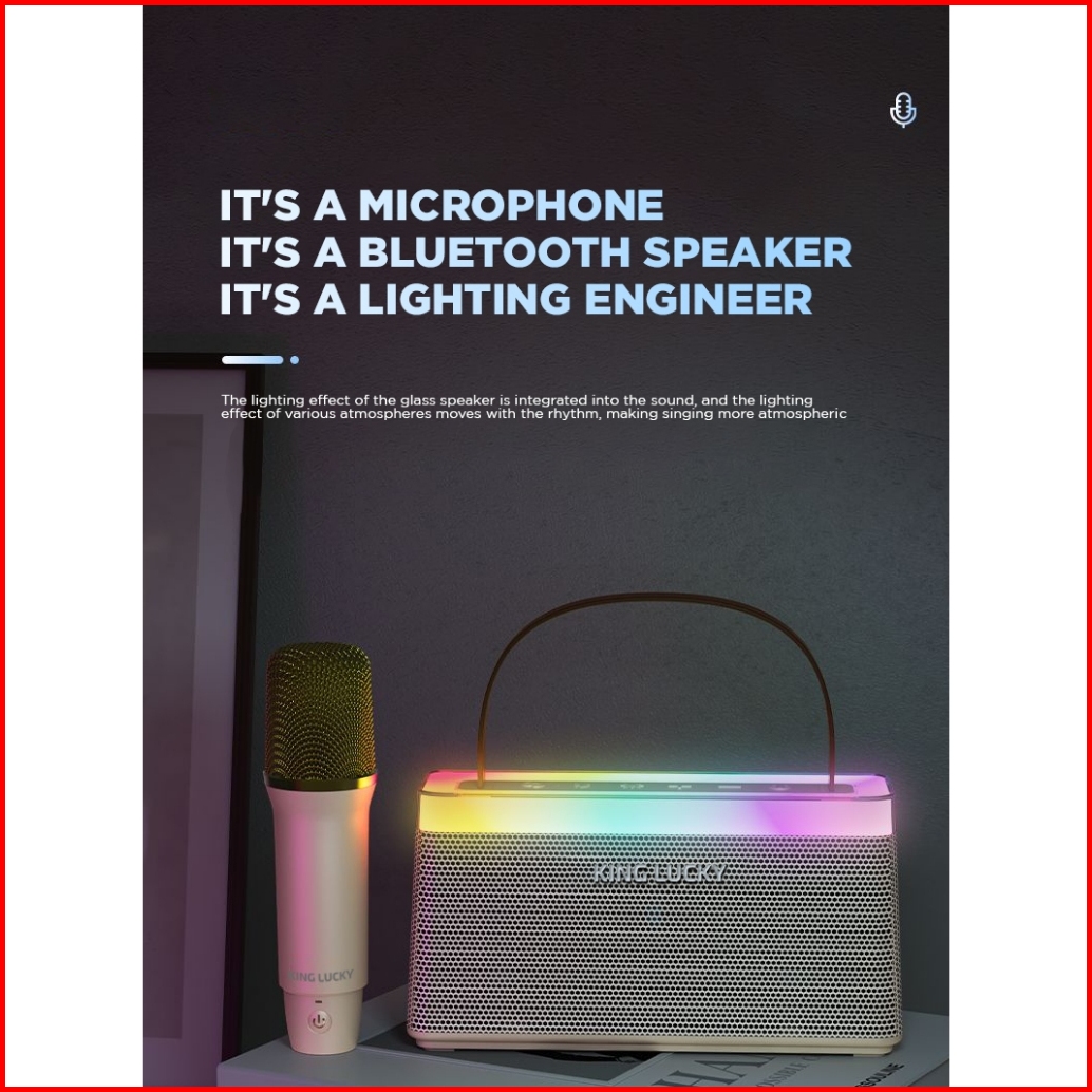 Kinglucky C10 Speaker Karaoke Bluetooth Mini Portable 2mic Karaoke Home Set Lampu Rgb 4 Mode Suara