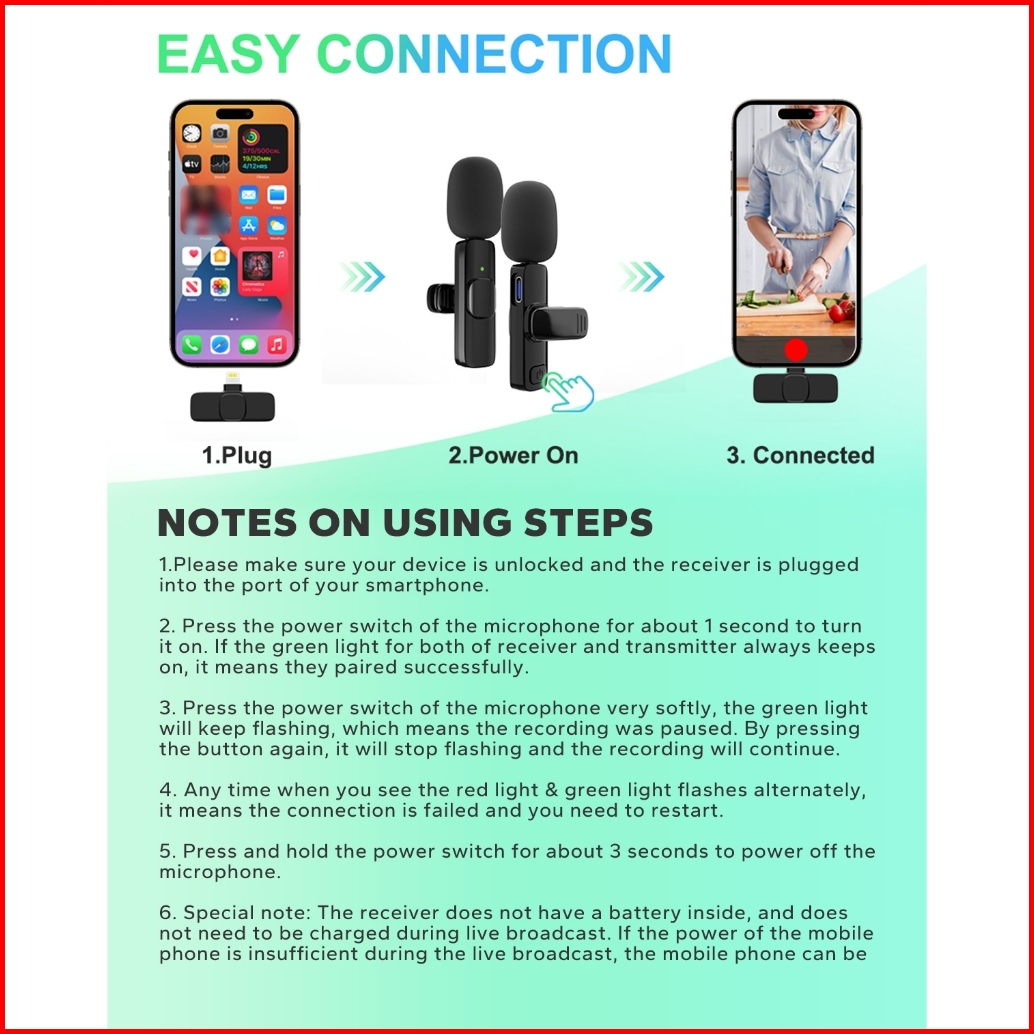 Mic Wireless Clip On Audio Video Pembuatan Rekaman Microphone Hp Iphone Android Game Mobile