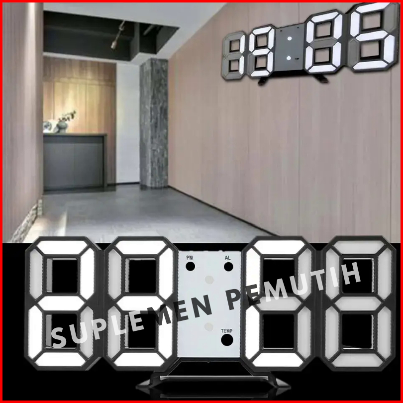 Jam Dinding Digital Led Jam Meja-alarm-suhu Jam 3d Besar Modern
