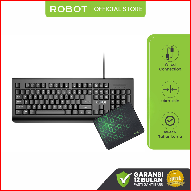 Robot Keyboard Wired Laptop Komputer Design Ultra Thin Ringan Keyboard Portable Mini Office Wired Keyboard Rk20 Garansi
