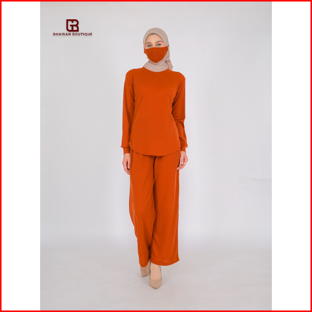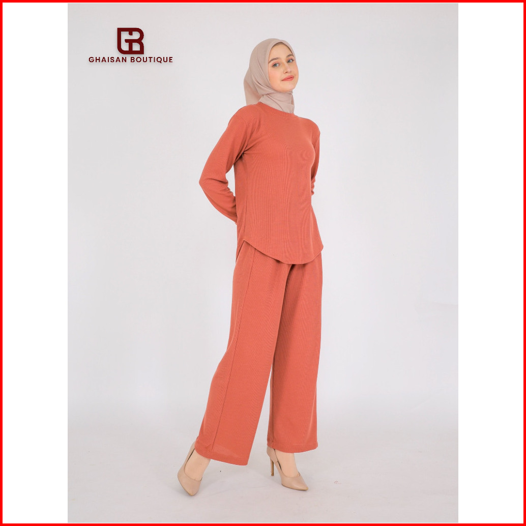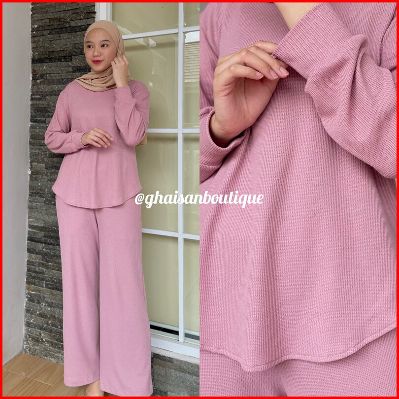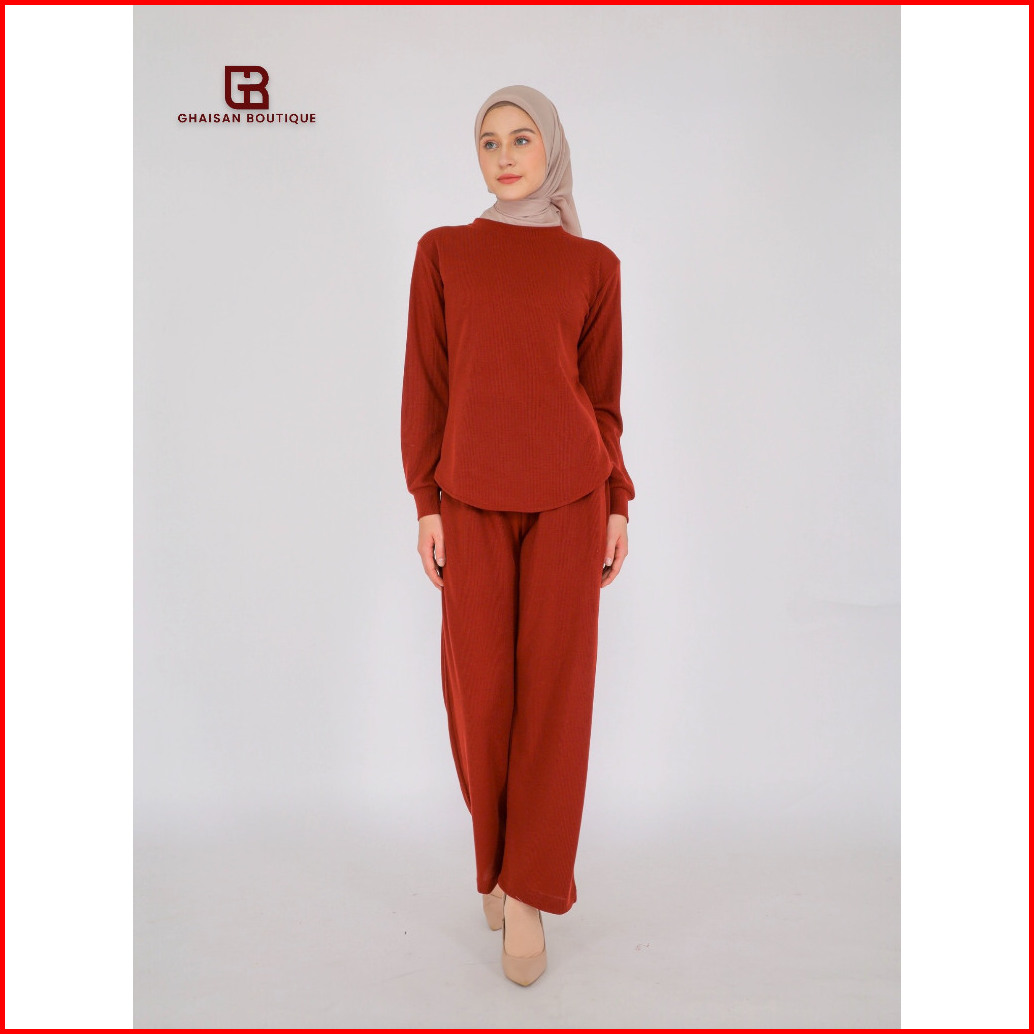 Ghaisanboutique Bella Set Ii - One Set Knit Premium Setelan Wanita Waffle Knit Atasan Dan Celana Kulot One Se Wanita Cas