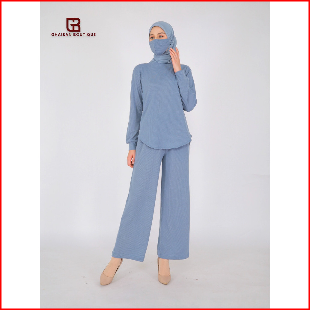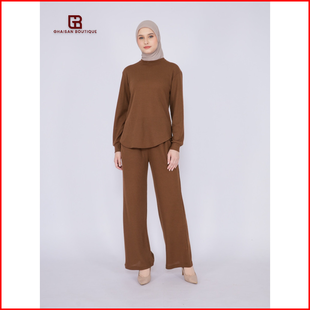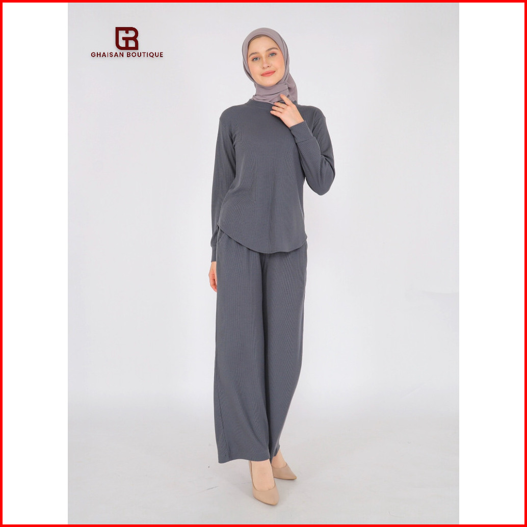 Ghaisanboutique Bella Set Ii - One Set Knit Premium Setelan Wanita Waffle Knit Atasan Dan Celana Kulot One Se Wanita Cas