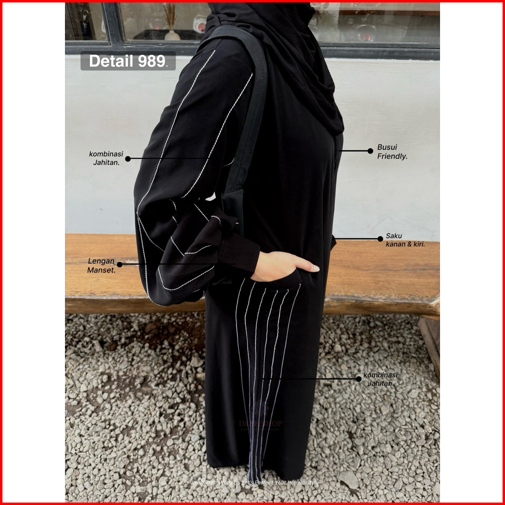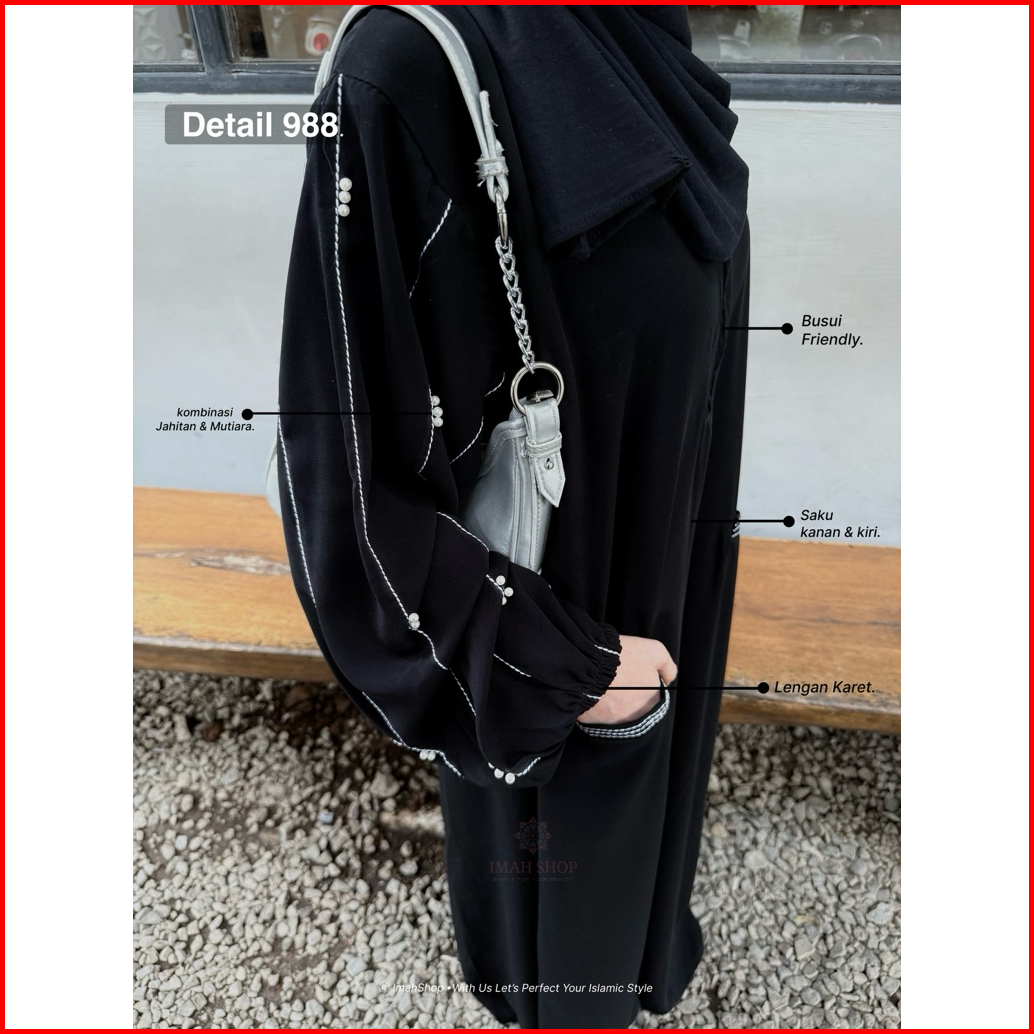 Abaya Hitam Turkey Gamis Syari Muslimah Bahan Jetblack Hitam Kombinasi Mutiara Imah Shop Dress Arab Saudi 988 989