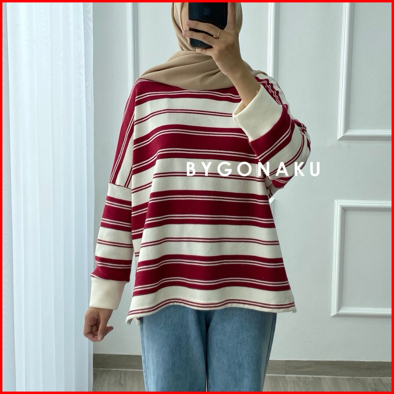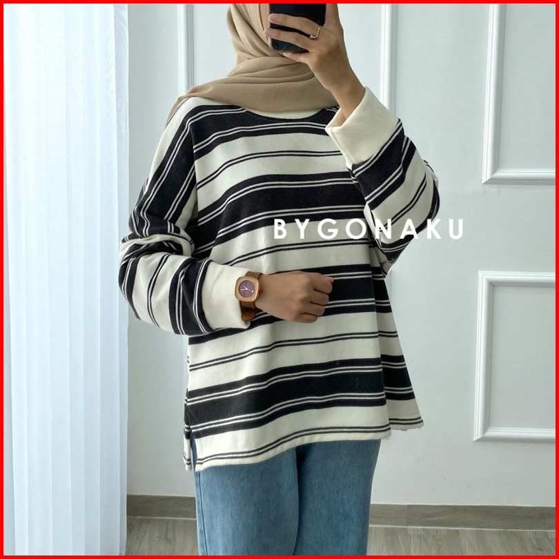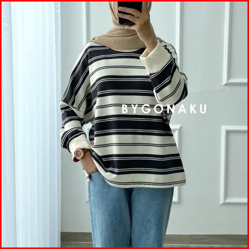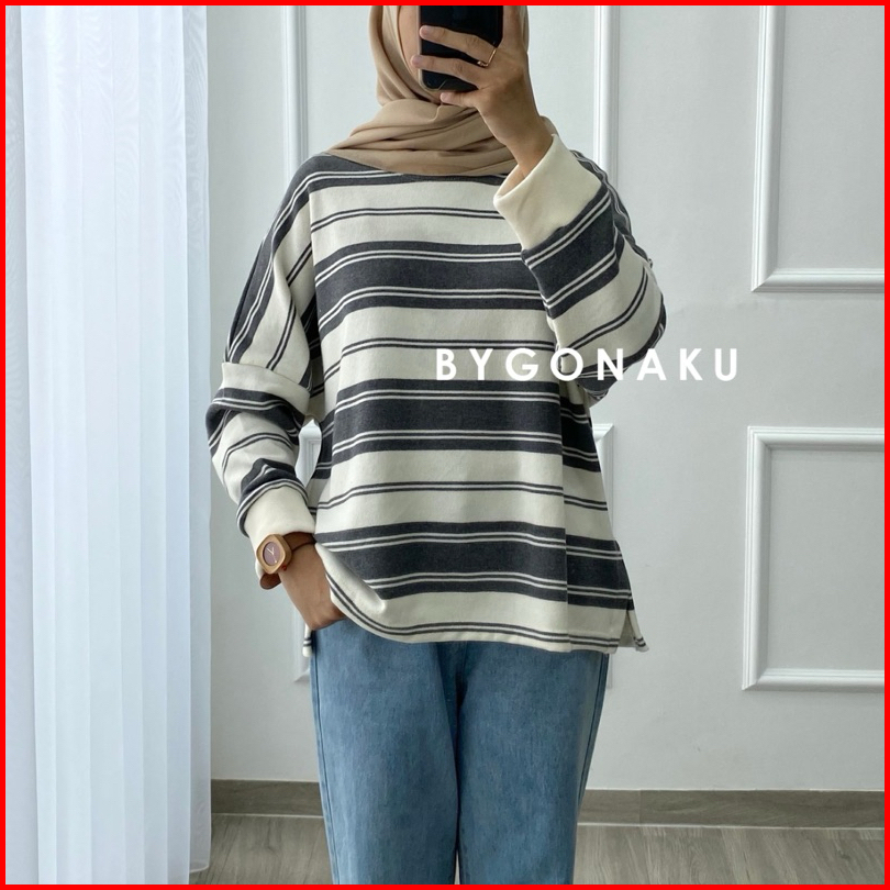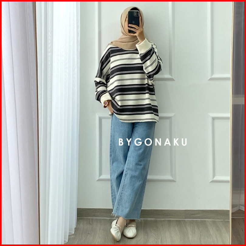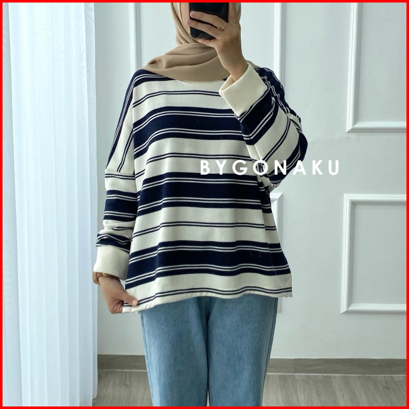 Gonaku Lolly Basic Sweater Oversized Sweater Stripes Stripes Blouse Sweater Bigsize Sweater Knit Atasan Wanita Sweater J