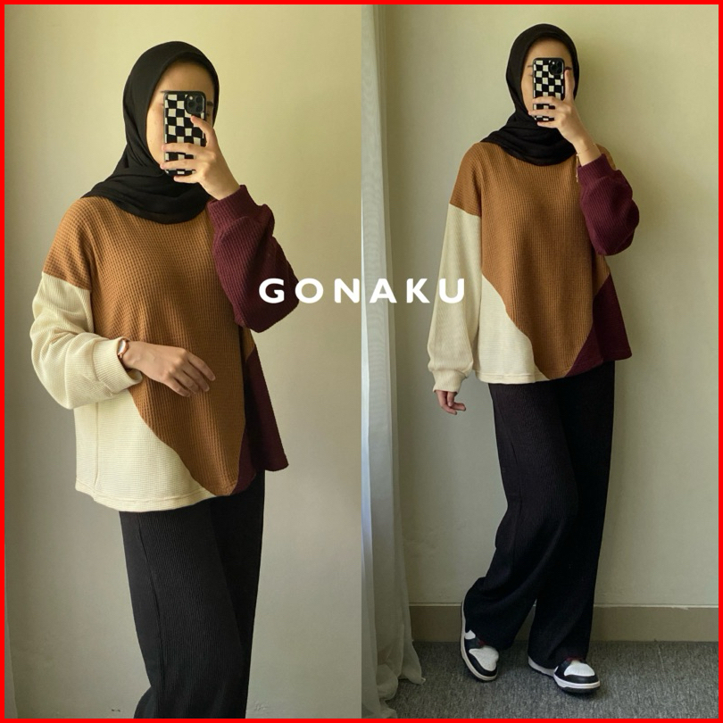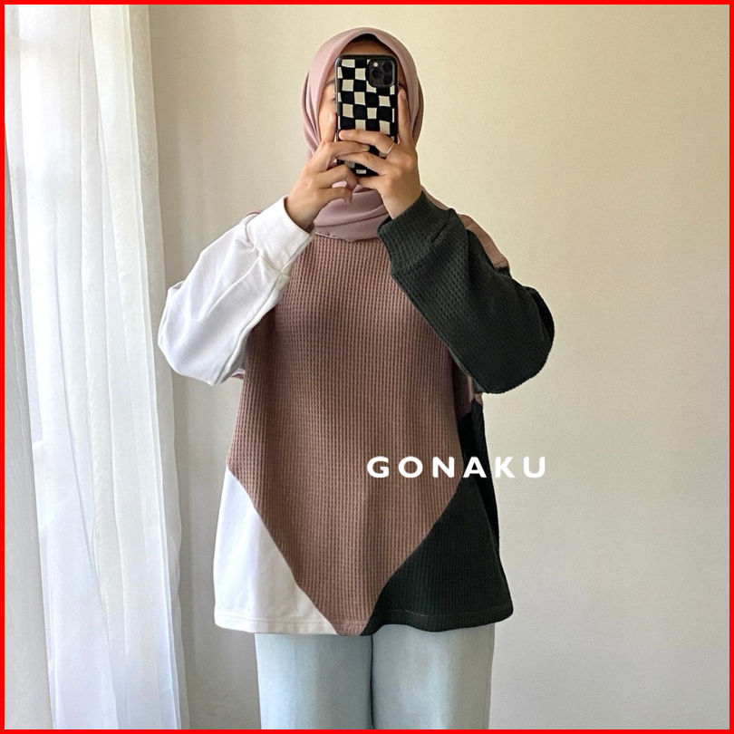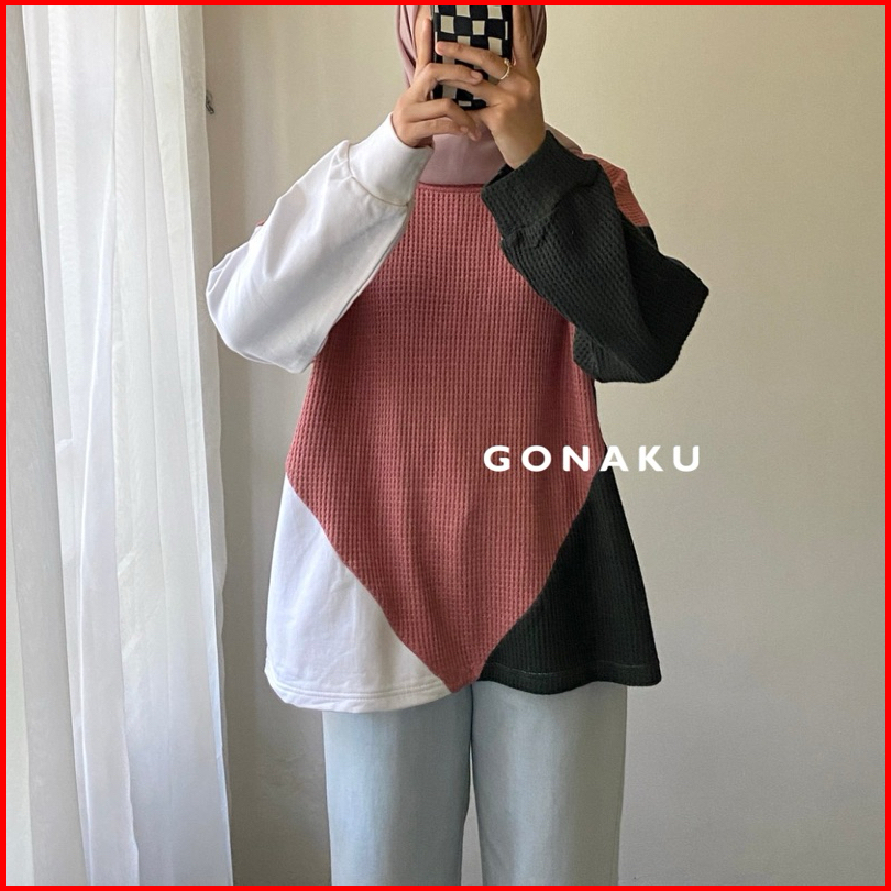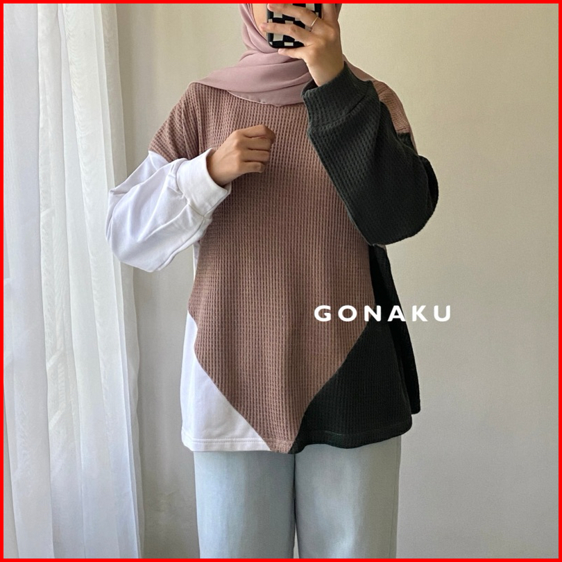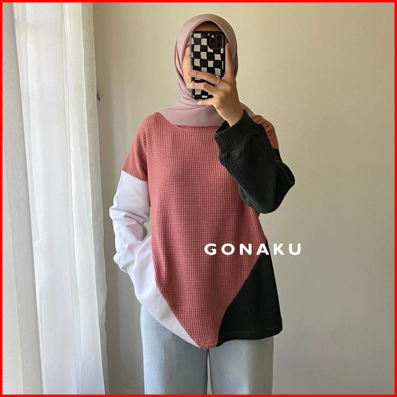 Gonaku Sydney Blouse Three Tone Oversized Top Basic Kaos Oversized Kaos Oblong Blouse Bigsize Blouse Knit Atasan Wanita