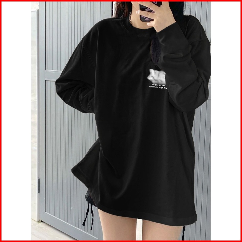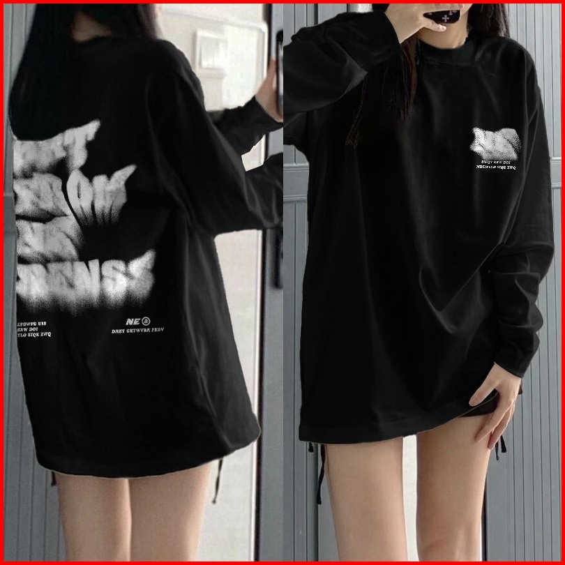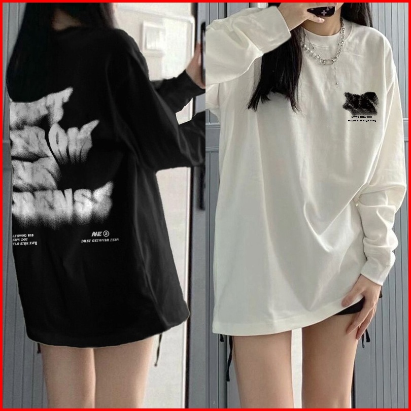 Kaos Oversize Lengan Panjang Wanita Cetakan Surat Fashion Blockbuster Korean Style Baju Kaos Lengan Panjang Wanita Terba