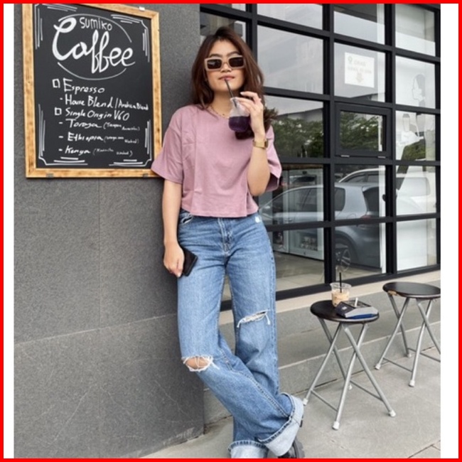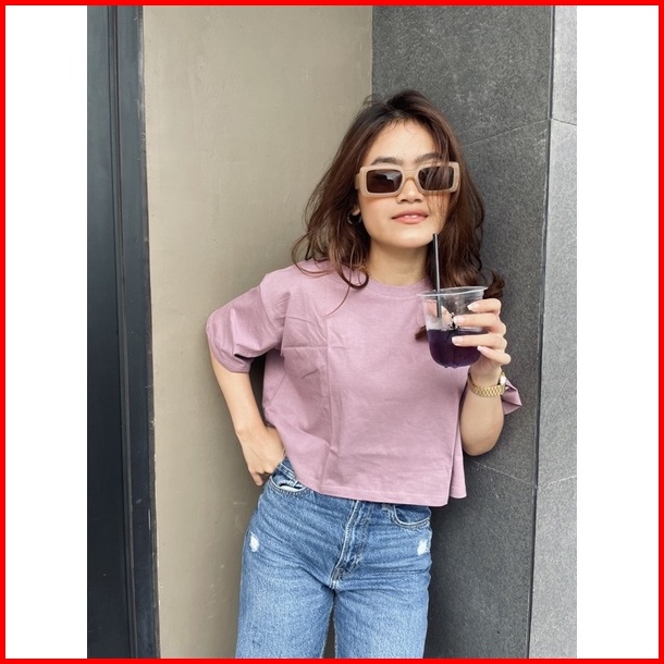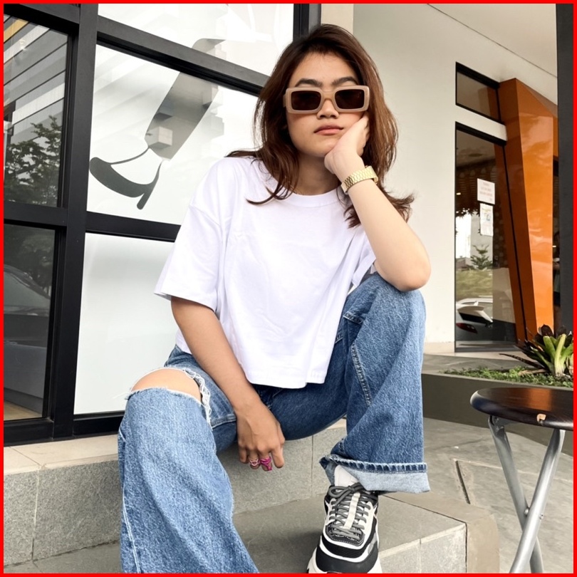 Kaos Polos Oversize Crop Top T Shirt Croptee Baju Wanita Tangan Pendek Oversized Bahan 100 Cotton Combed 24s