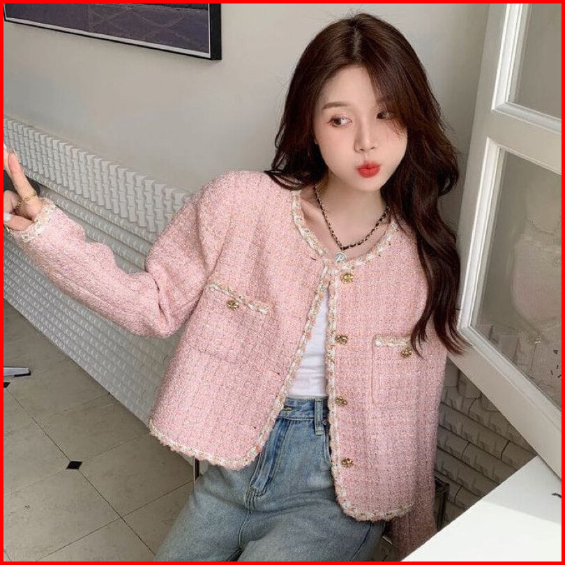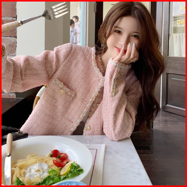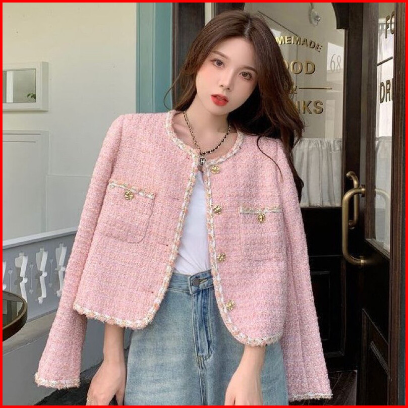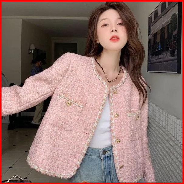 Blazer Pink Small Fragrant Pink Tweed Short Coat For Women New Autumn And Winter Small High-end Celebrity Tops Blazer Ko