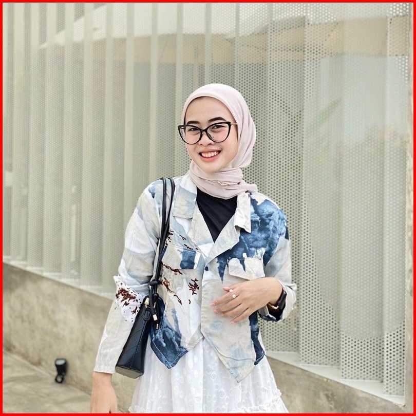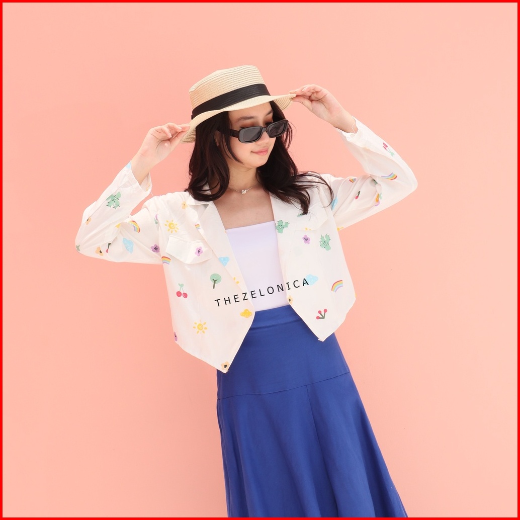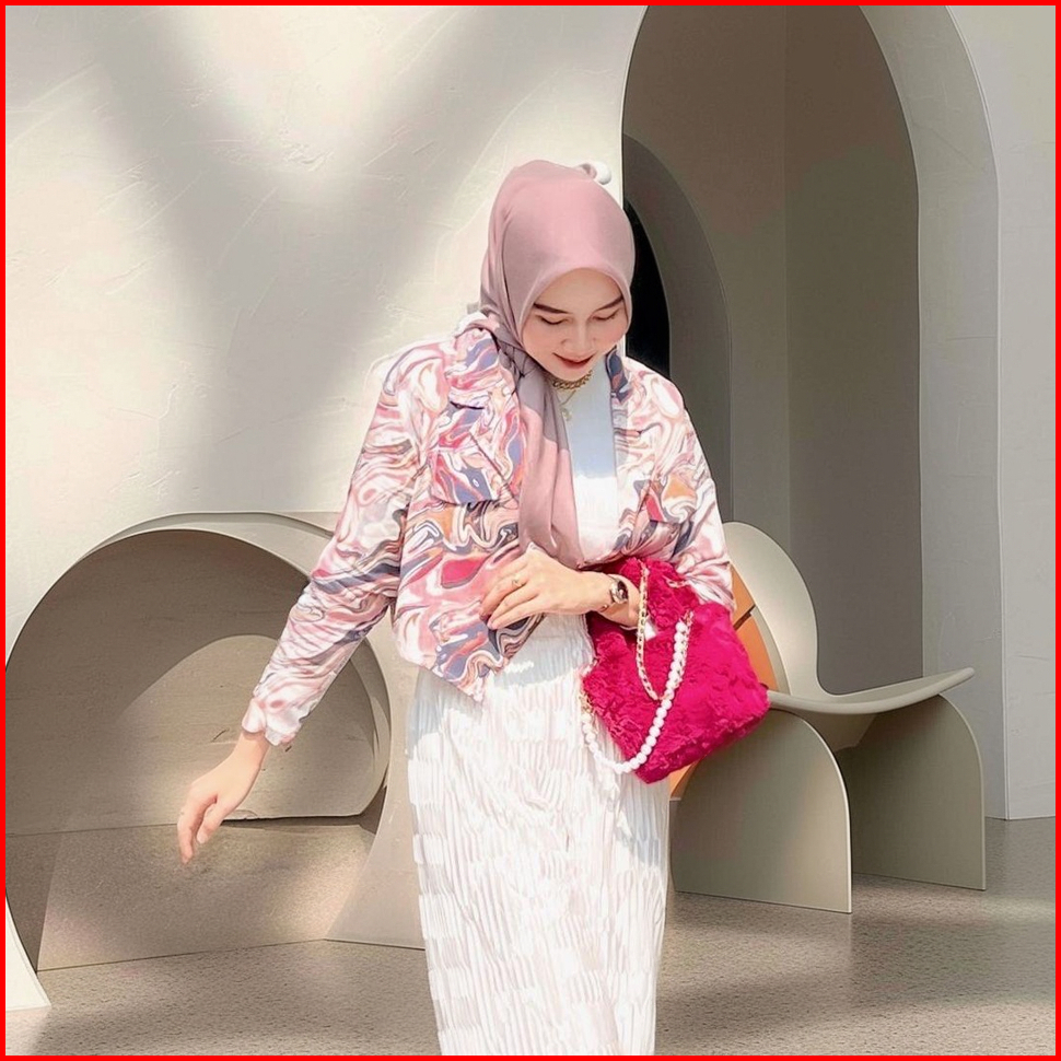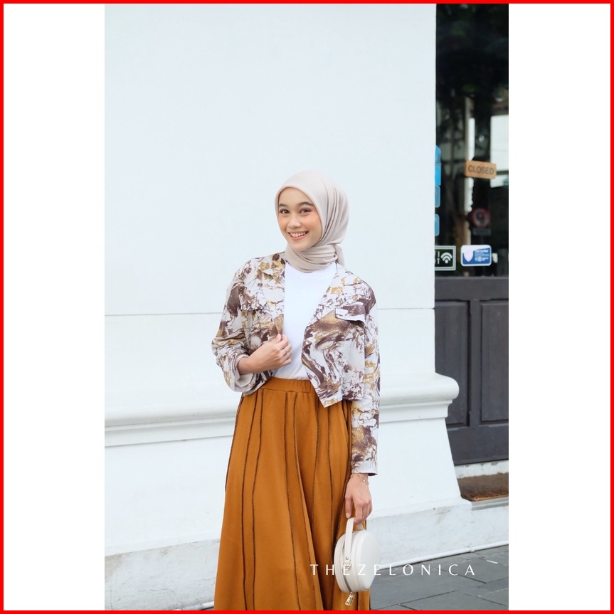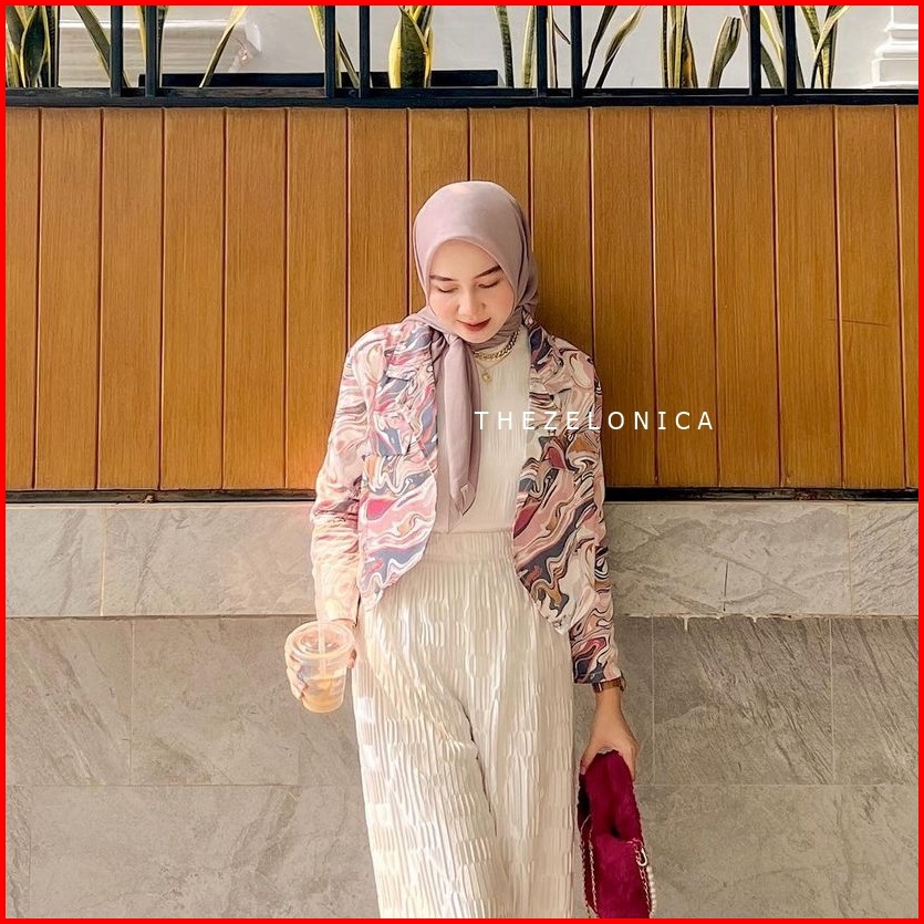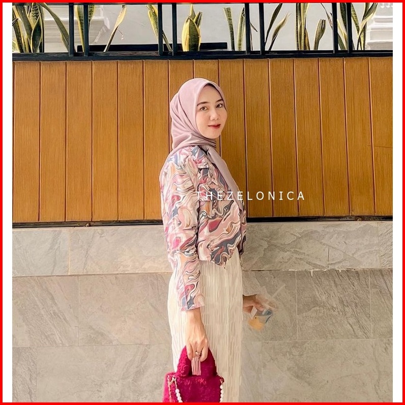 Zelonica Marbel Blazer Croptop Bahan Rayon Premium