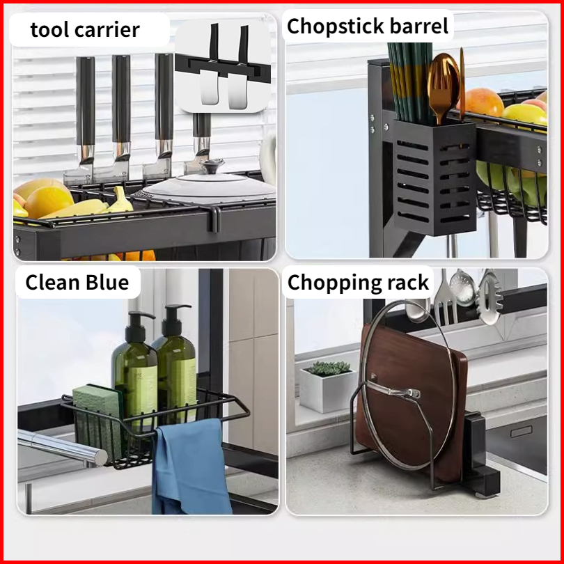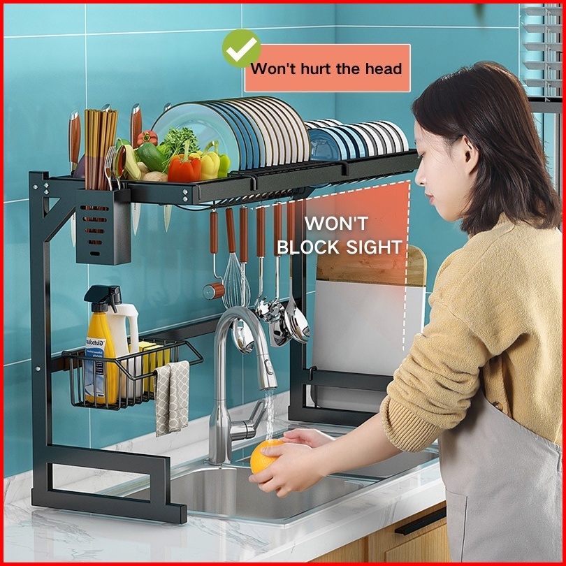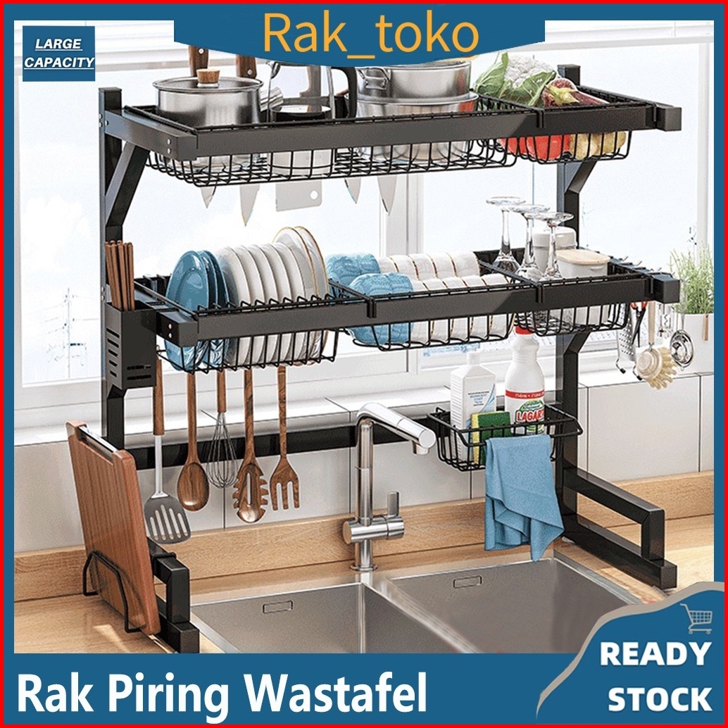 Rak Piring Wastafel Stainless Steel Hitam Peralatan Dapur Kokoh Kuat Rak Cuci Piring Dapur