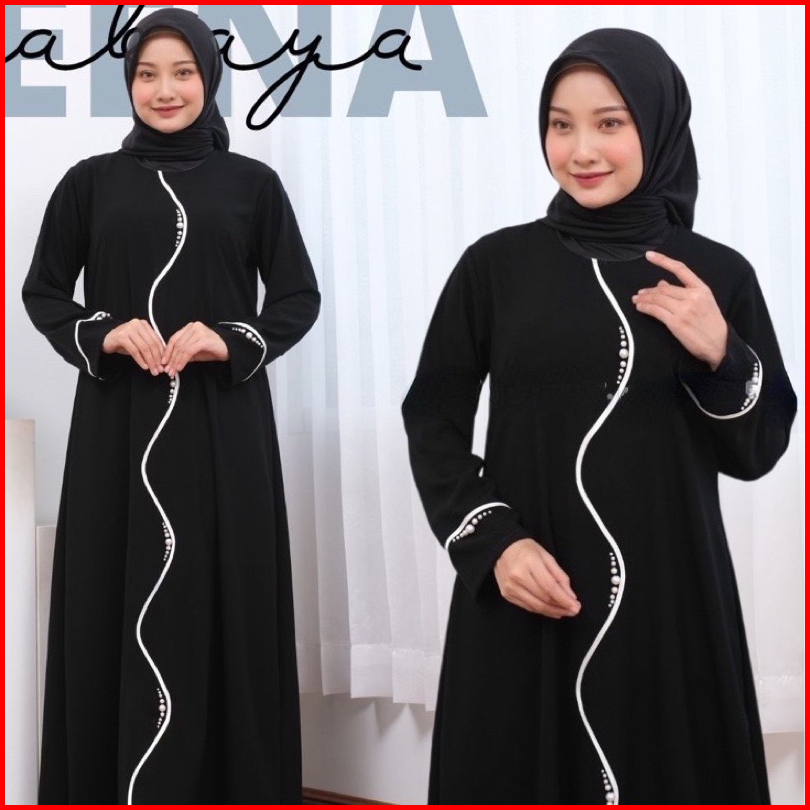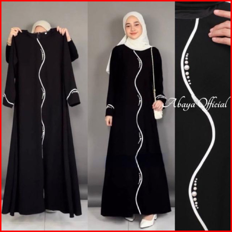Abaya Hitam Polos Jetblack Saudi Gamis Lis Putih Dress Maxi Mewah Dewasa Umroh Syari