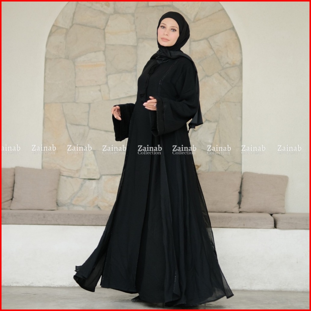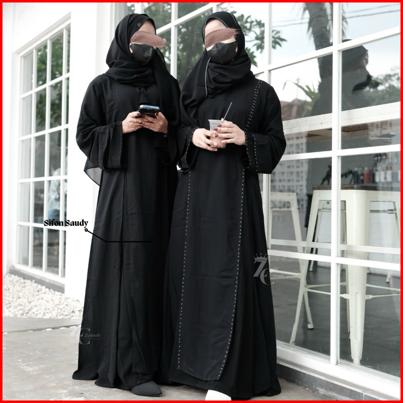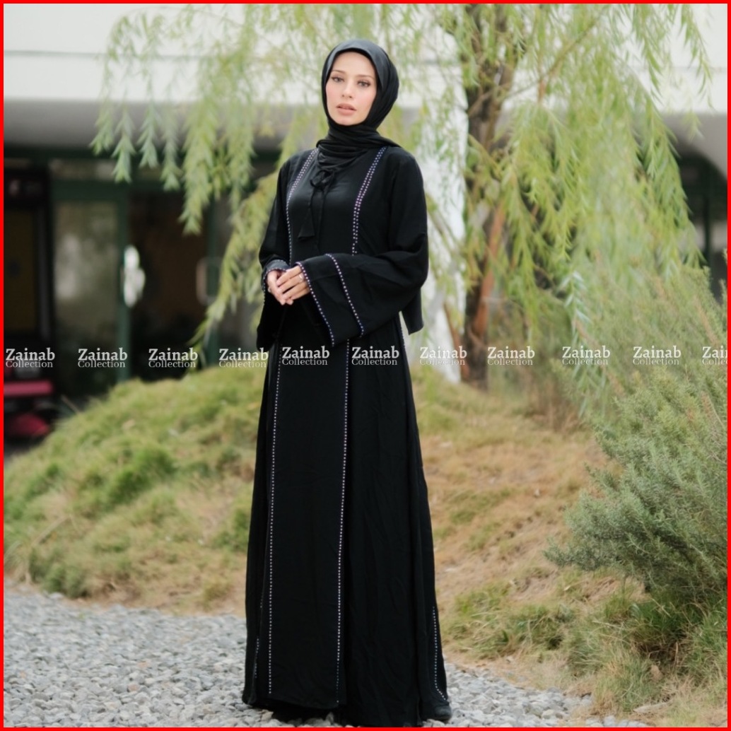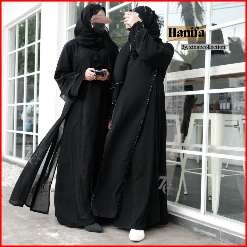 New Abaya Hanifah Dress Maxi Pesta Gamis Hitam Remaja Bordir Zephy Umroh Dubai