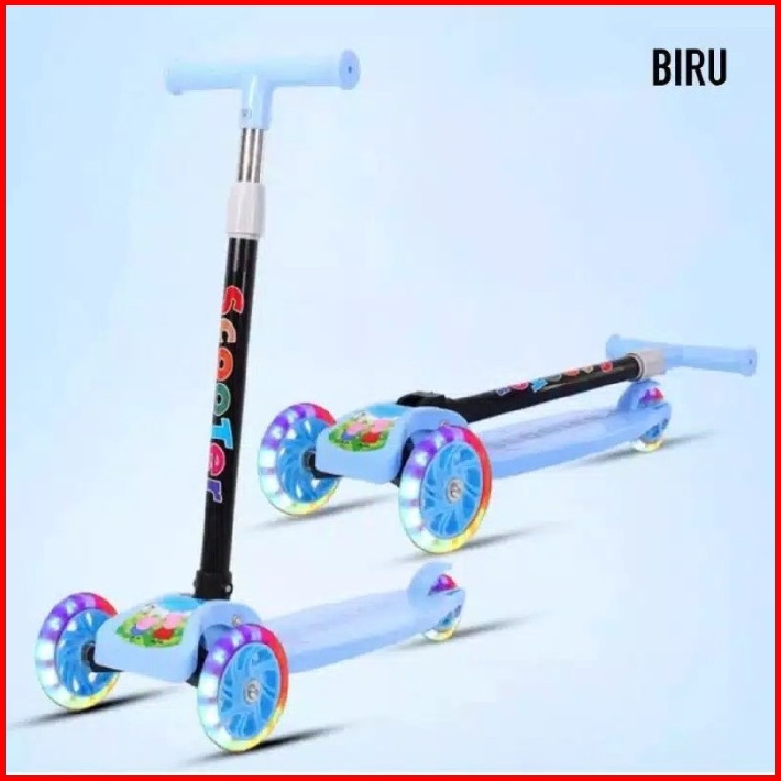 Skuter Kickboard Otoped Scooter Lipat Led Lampu Roda 3 Hadiah Anak