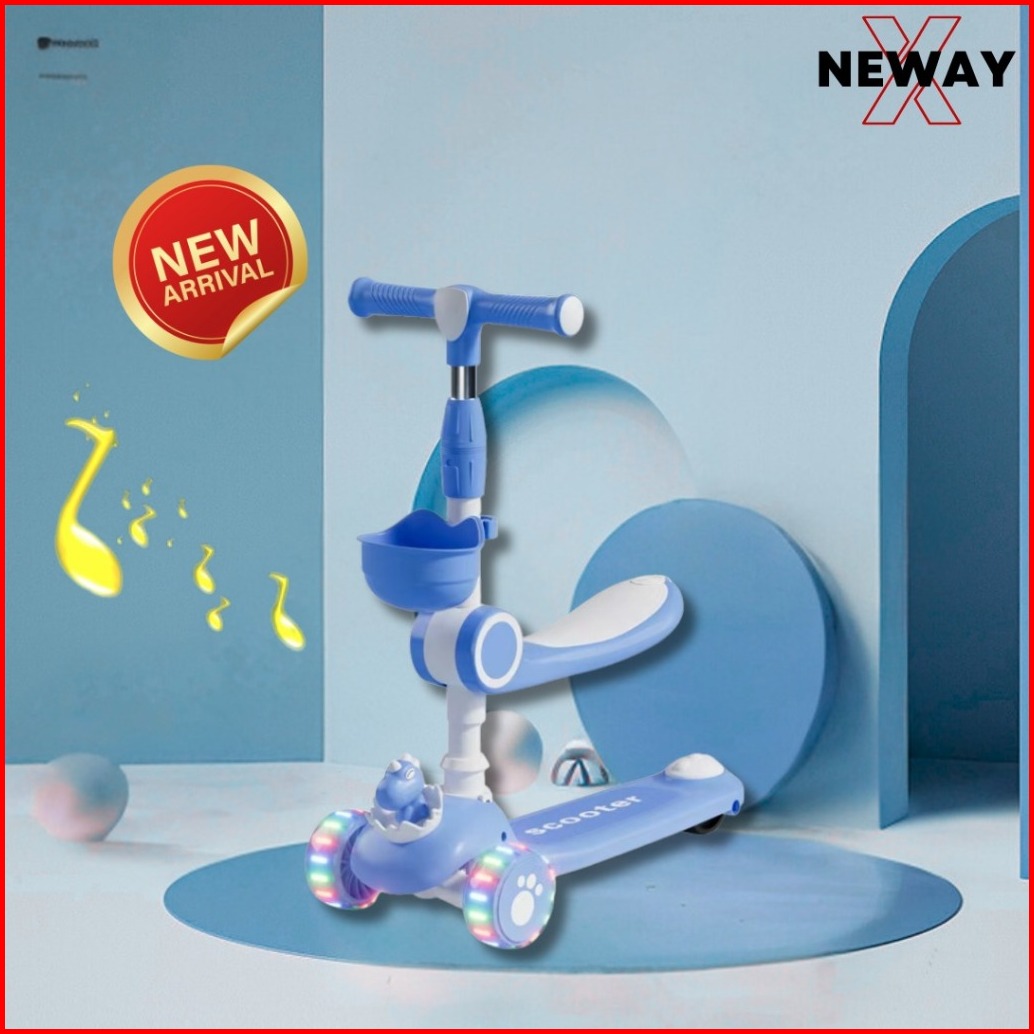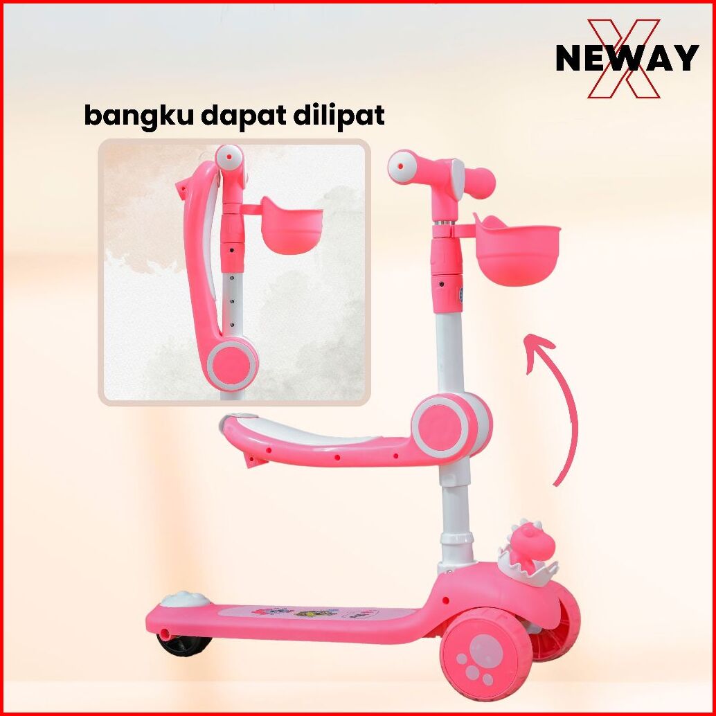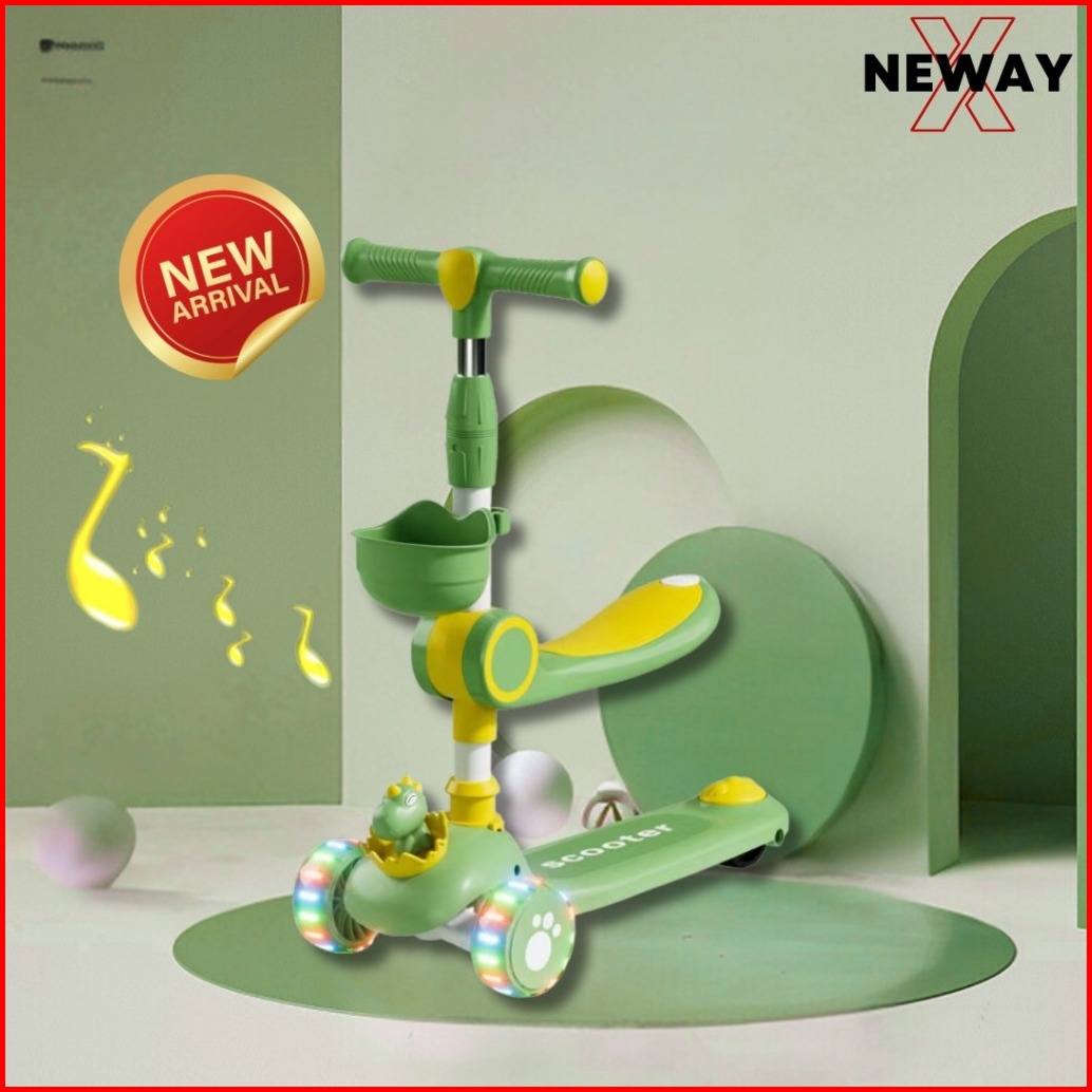 Scooter Mainan Anak Telur Bayi Dino 2 In 1 Skuter Lipat Duduk Roda Tiga Otoped Lampu Musik Dinosaurs