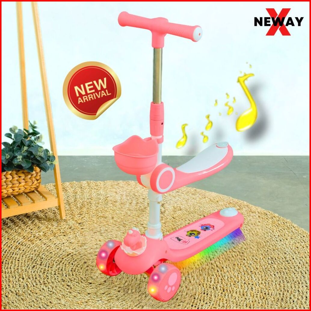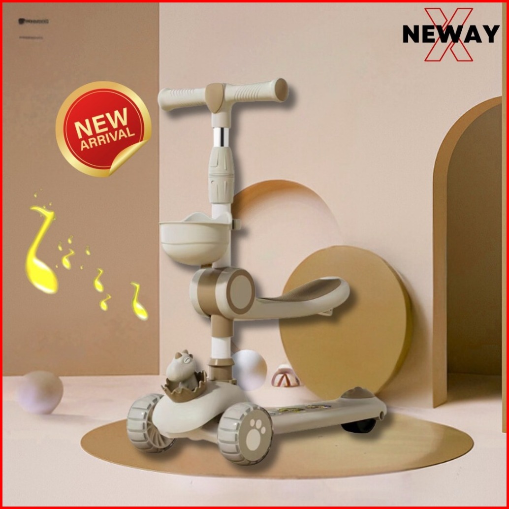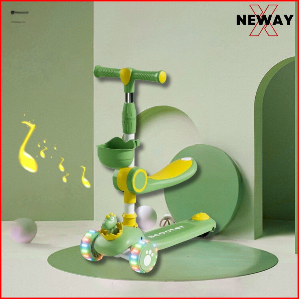 Scooter Mainan Anak Telur Bayi Dino 2 In 1 Skuter Lipat Duduk Roda Tiga Otoped Lampu Musik Dinosaurs