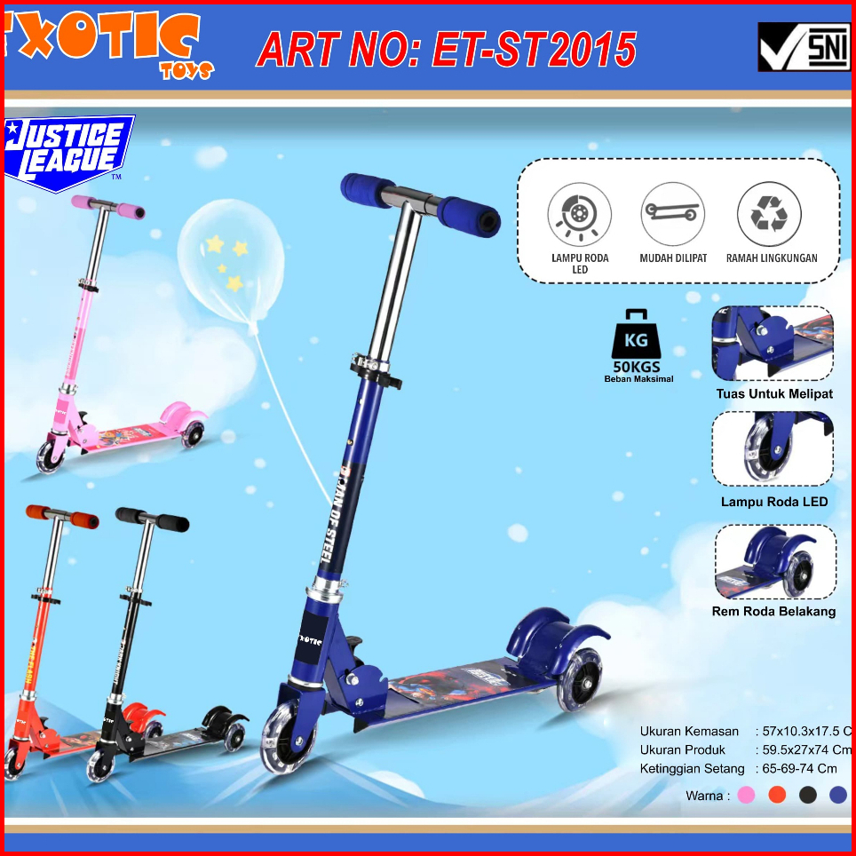 Scooter Lipat Exotic St-2015 St-2020 Rmb - 3ks - Skuter Lipat Anak Exotic Bahan Steel Roda 3 Karakter Justice League
