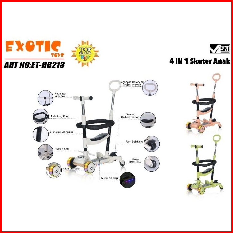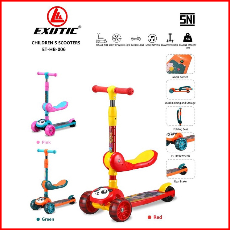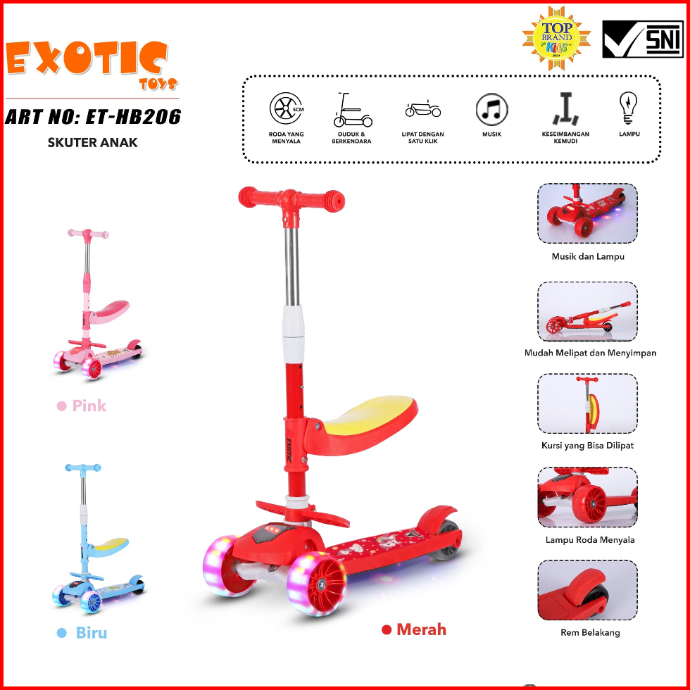 Termurah Skuter Duduk Anak Exotic 006 206 207 208 210 211 213 Stir Dorongan Musik Lampu Sekuter Otopet Otoped Scooter Hb